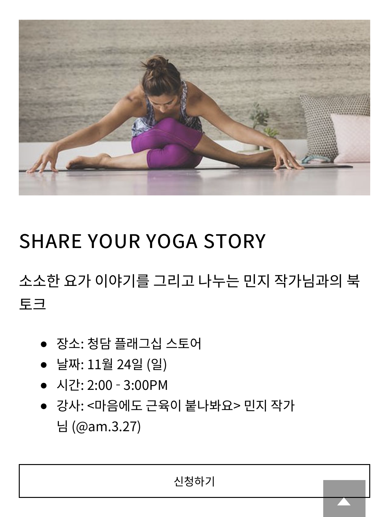 관심있으신 분들은 룰루레몬 인스타그램이나 사이트로 가셔서 커뮤니티 클래스를 신청해주세요.