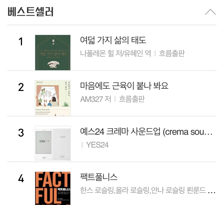 <마음에도 근육이 붙나 봐요>가 예스24 e-book 베스트셀러 순위 2위네요. 요가를 접해보지 않은 분들에게도 새로운 시작으로 도움이 된다는 내용의 리뷰가 보여서 더욱 뿌듯합니다.