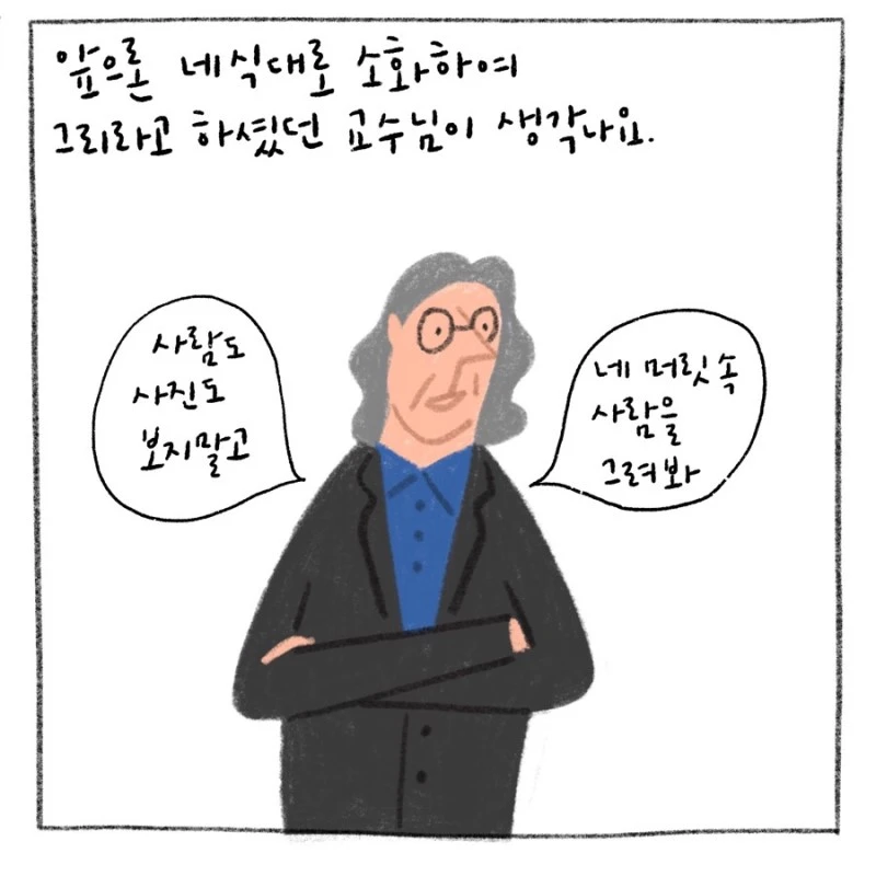 <마음에도 근육이 붙나 봐요>책에 싣기도 했던 재작년 그림을 가져와봤습니다. 학교생활 동안 기억에 남는 스승을 생각하면 저는 이 분이 가장 먼저 떠올라요. 여러분은 기억에 남는 선생님이 계신가요?