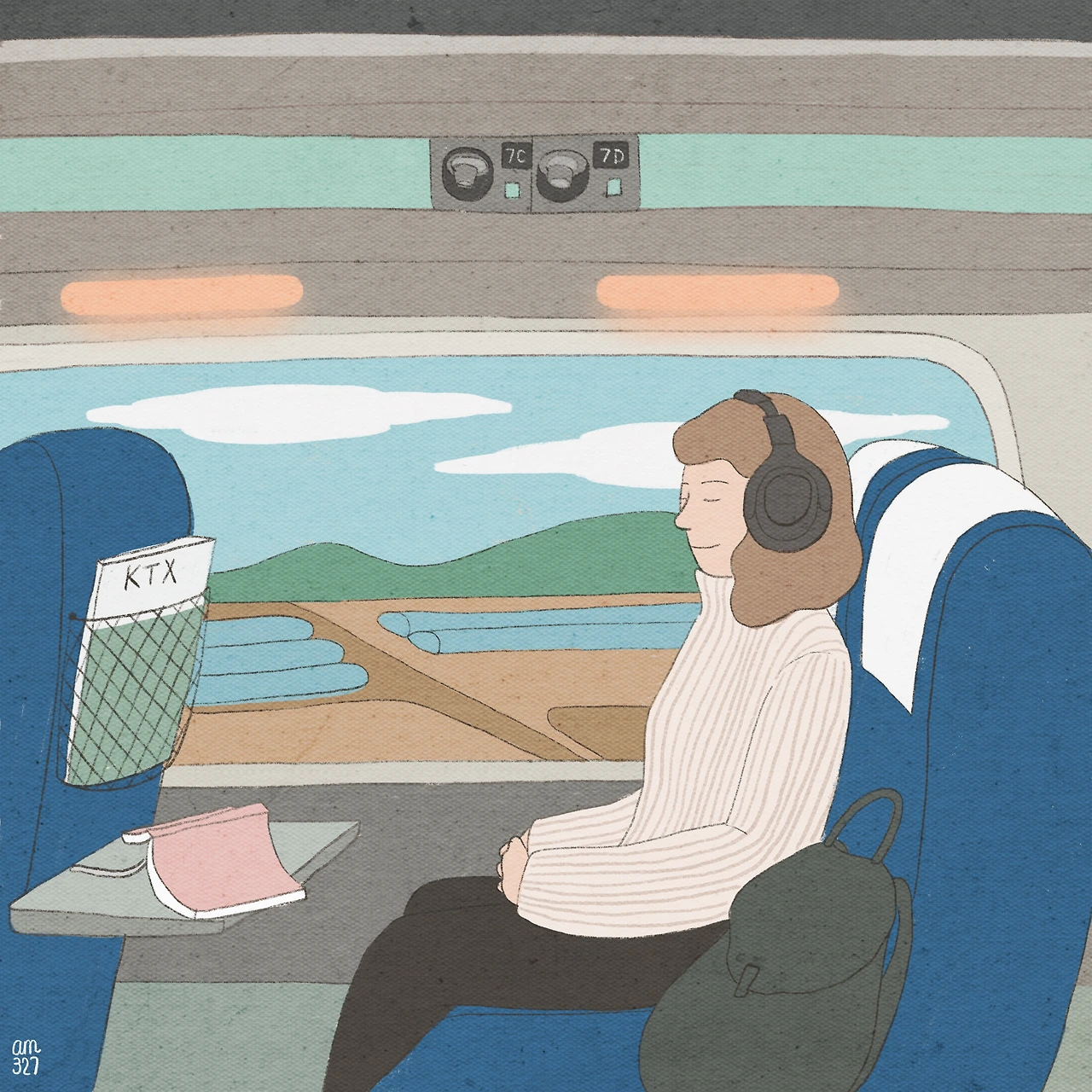 기차 안에서 헤드폰을 끼고 명상을 했었는데 장소의 온도와 감은 눈의 일렁임이 생생하다. 소음을 차단해 주는 노이즈 캔슬링 헤드폰을 사용하면서 엉뚱하게도 나는 도망치는 방법을 터득했다. 그리고 그건 비겁한 행동이 아니라 나를 위한 일이라는 것도 알게 되었다. 듣기 싫은 것은 듣지 않고 보기 싫은 것은 노력해서라도 눈에 담지 말아야지. 집에 오는 길, 마음이 허해지는 만남과 관계를 멀리하게 된 것은 코로나 덕이 크다. #그림에세이 #잘살고싶은마음