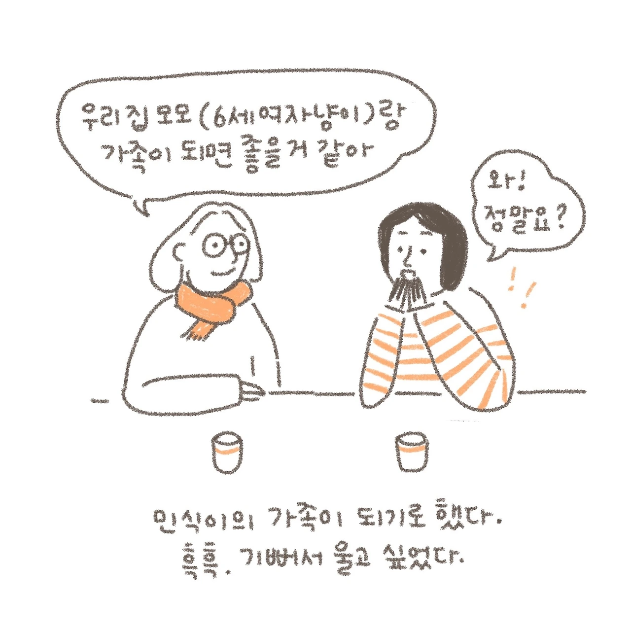 이왕이면 가족 품에서 회복하며 적응하는 게 좋을 것 같아 예상보다 빨리 보내게 되었어요. 오늘 밤이 민식이와 마지막 밤이에요. 벌써 정들었어.....#사지마세요입양하세요버리지마세요 #그림에세이#잘살고싶은마음