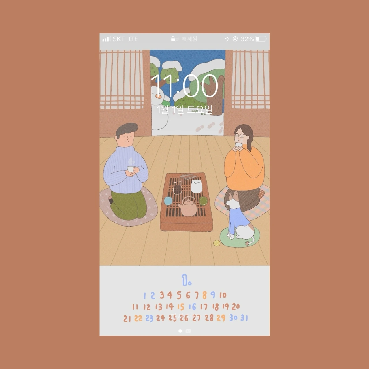 차의 시간을 담은 1월 그림을 가지고 왔어요.