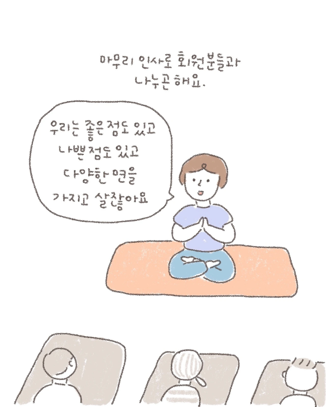 이야기를 그리고 요가를 나누는 버들입니다. <마음에도 근육이 붙나 봐요>, <물건이 건네는 위로>, <오늘도 내 마음에 들고 싶어서>를 그리고 썼습니다.