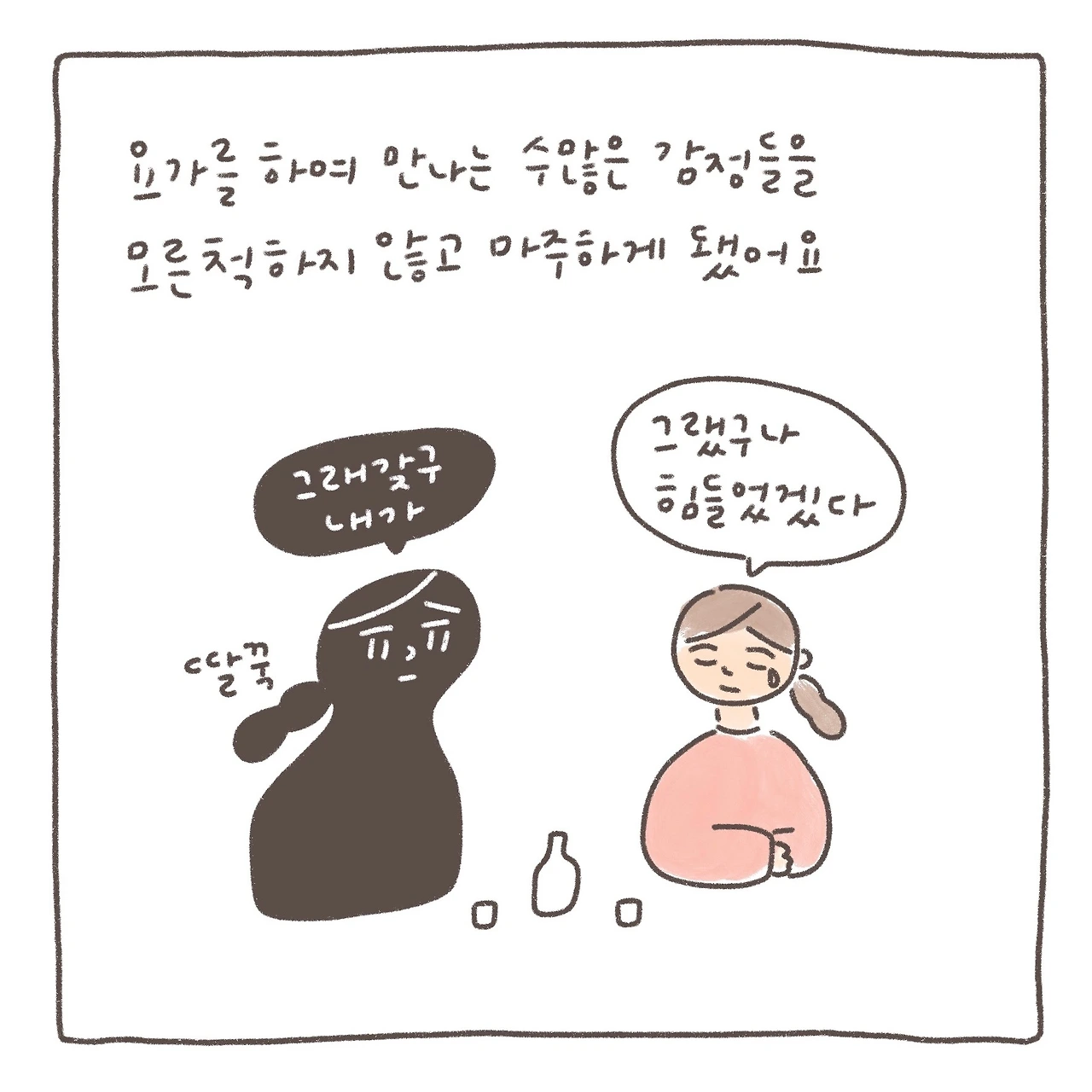 이야기를 그리고 요가를 나누는 버들입니다. <마음에도 근육이 붙나 봐요>, <물건이 건네는 위로>, <오늘도 내 마음에 들고 싶어서>를 그리고 썼습니다.