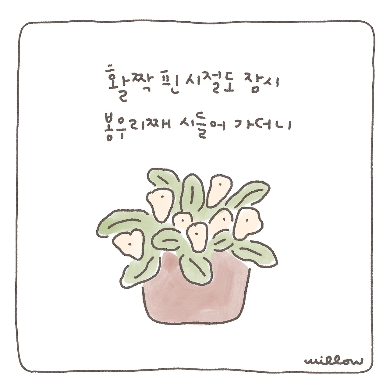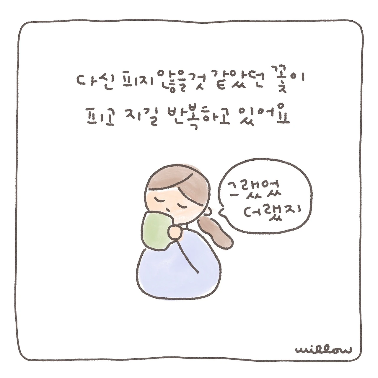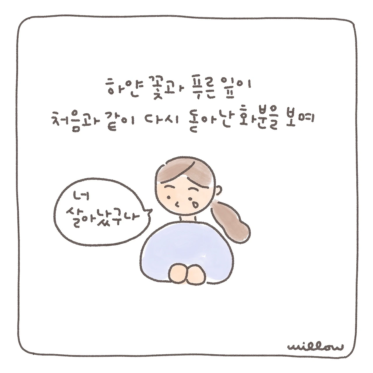 이야기를 그리고 요가를 나누는 버들입니다. <마음에도 근육이 붙나 봐요>, <물건이 건네는 위로>, <오늘도 내 마음에 들고 싶어서>를 그리고 썼습니다.