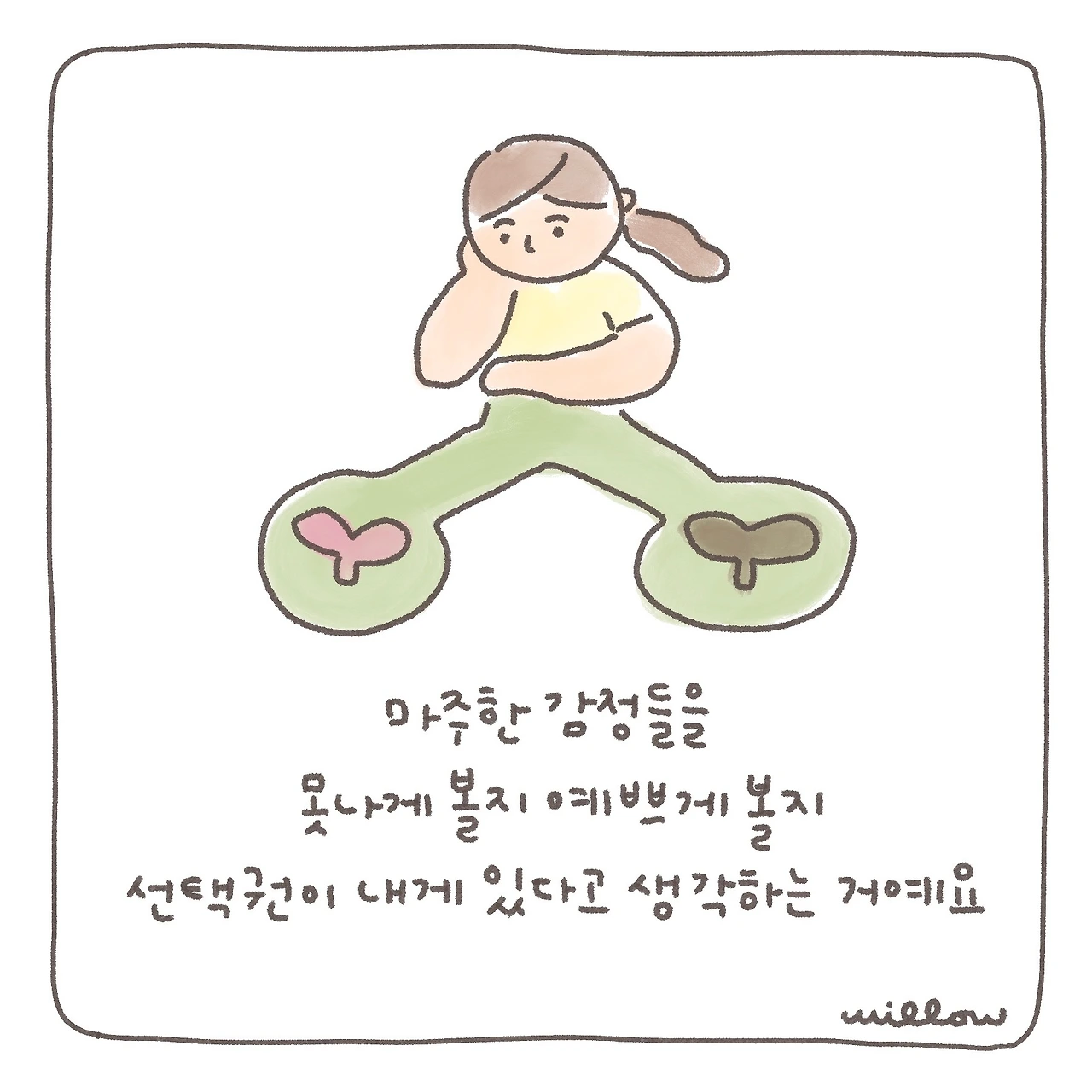 이야기를 그리고 요가를 나누는 버들입니다. <마음에도 근육이 붙나 봐요>, <물건이 건네는 위로>, <오늘도 내 마음에 들고 싶어서>를 그리고 썼습니다.