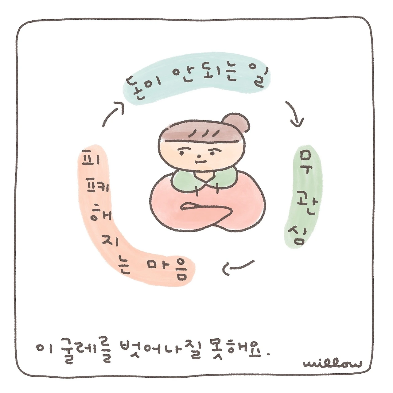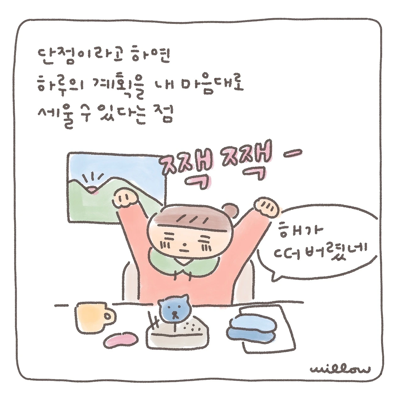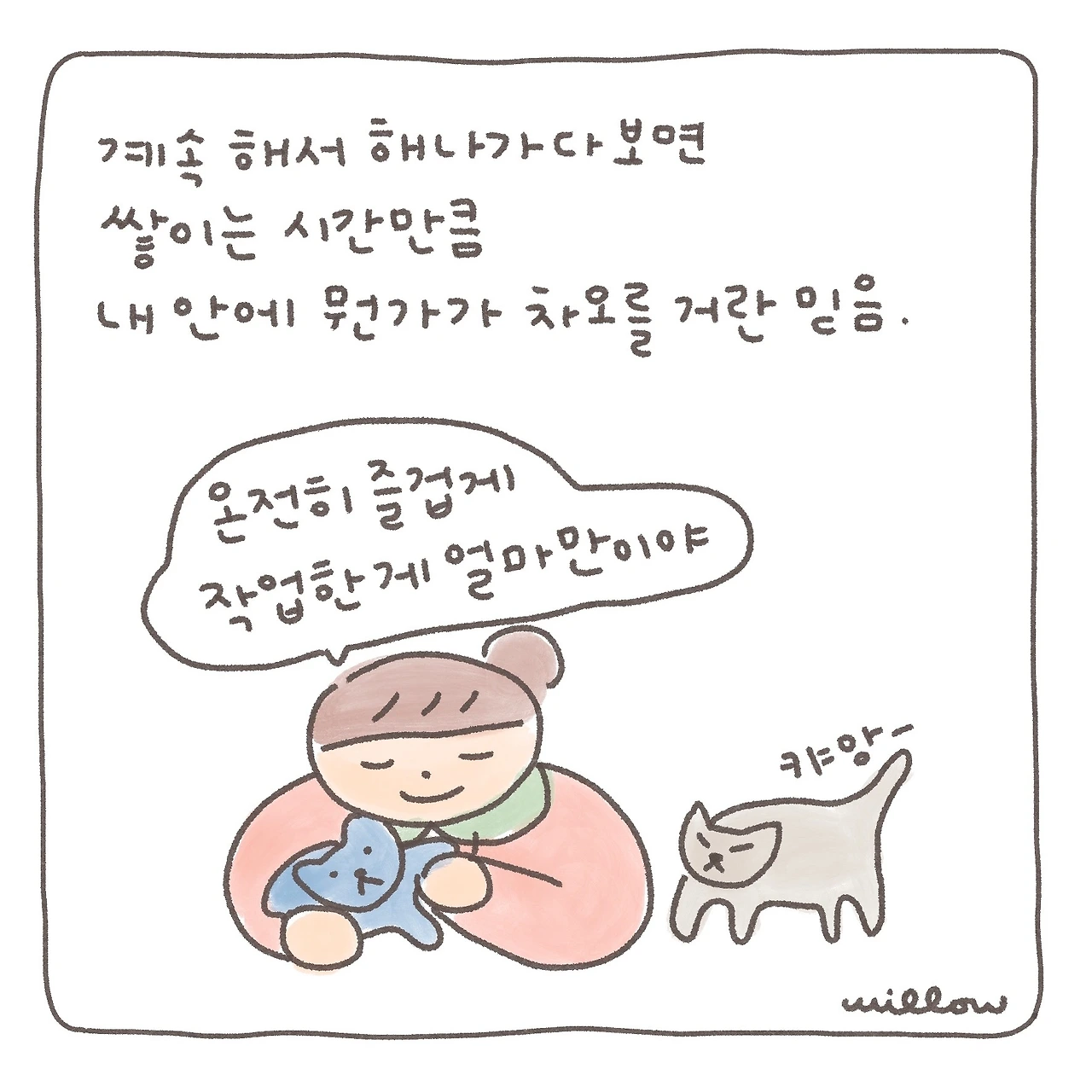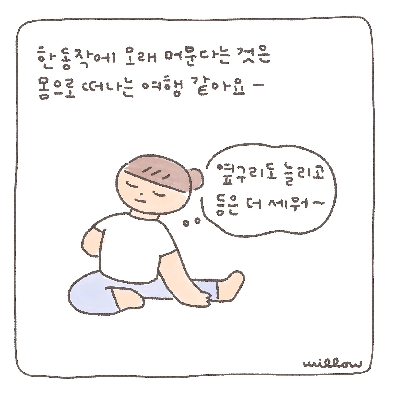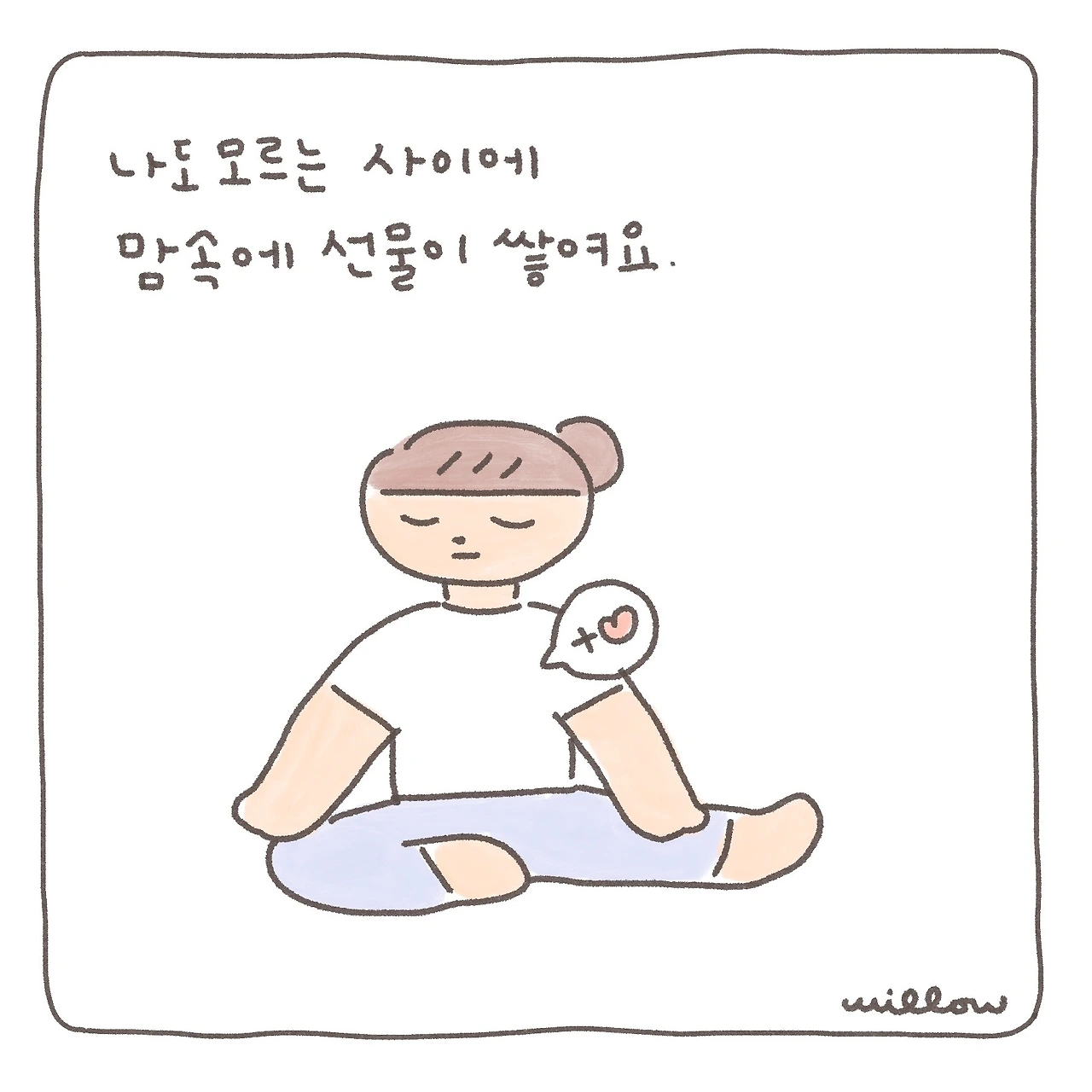 이야기를 그리고 요가를 나누는 버들입니다. <마음에도 근육이 붙나 봐요>, <물건이 건네는 위로>, <오늘도 내 마음에 들고 싶어서>를 그리고 썼습니다.