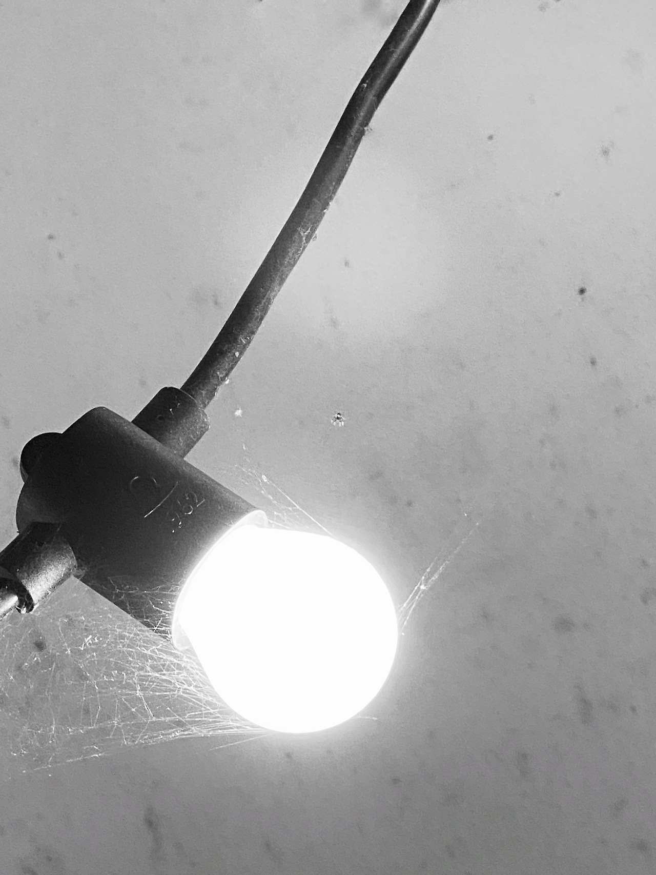 거미도 따뜻한 온기와 빛이 간절했는지 전구에 거처를 짓습니다.
