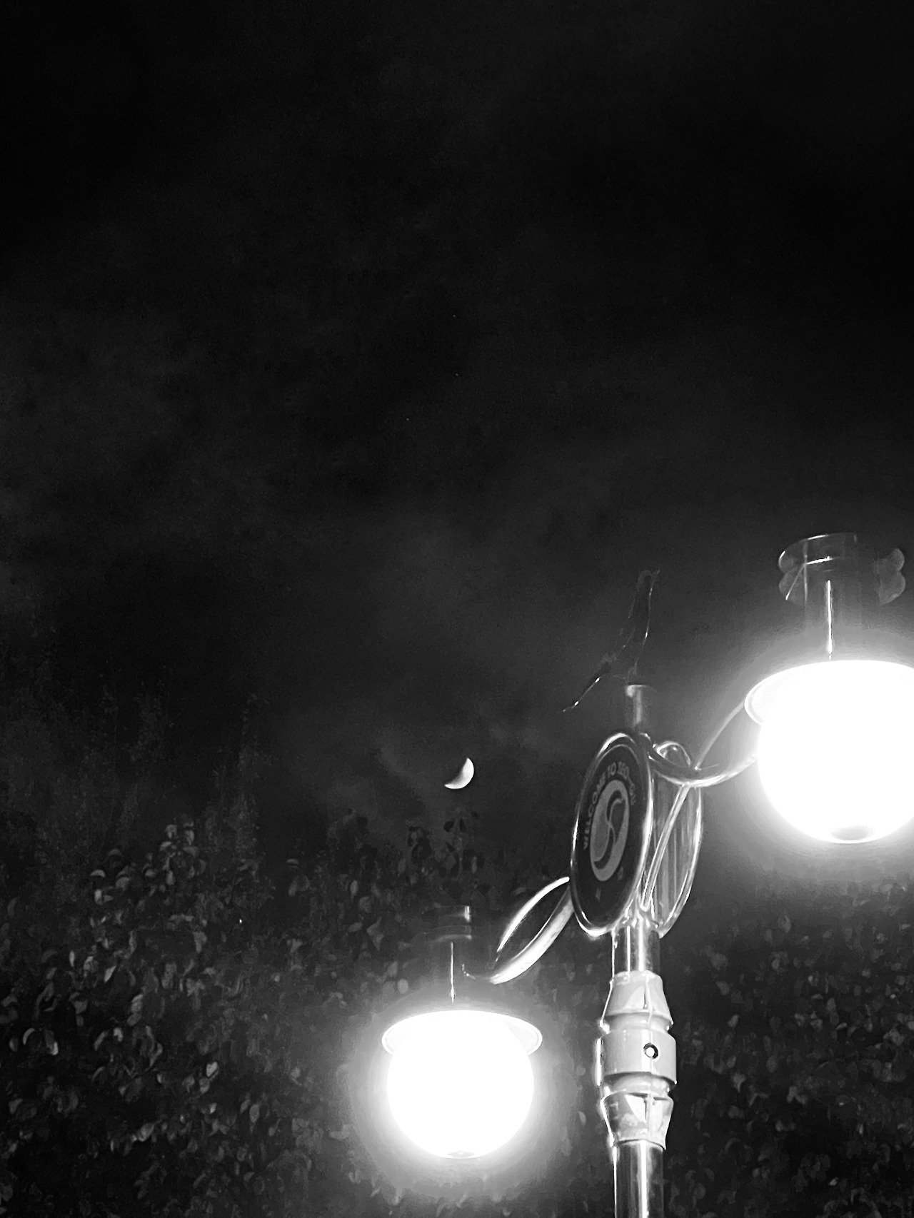 그런데 둥근 보름달 같은 가로등불 사이로 초승달이 고개를 내밀었네요.