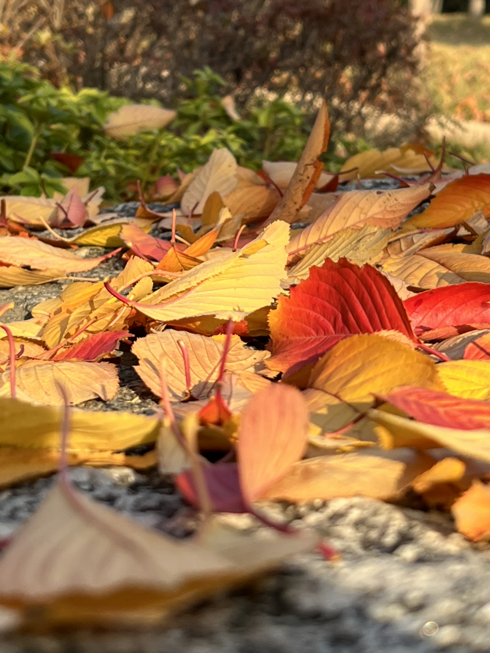 땅에 떨어진 알록달록한 낙엽만을 보느라 눈이 바쁩니다.