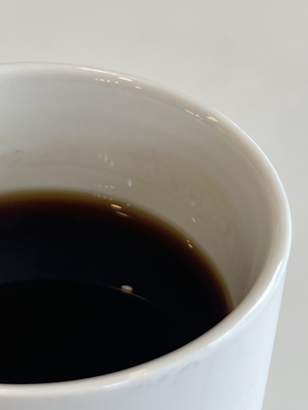 하얀 컵에 담긴 검은 물의 고요를 바라보니