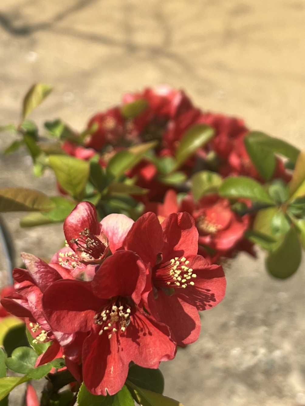 빨강이라 해서 다 같은 빨강이라고 부르지 말라는 듯 진한 색감을 드러내는 명자나무꽃.