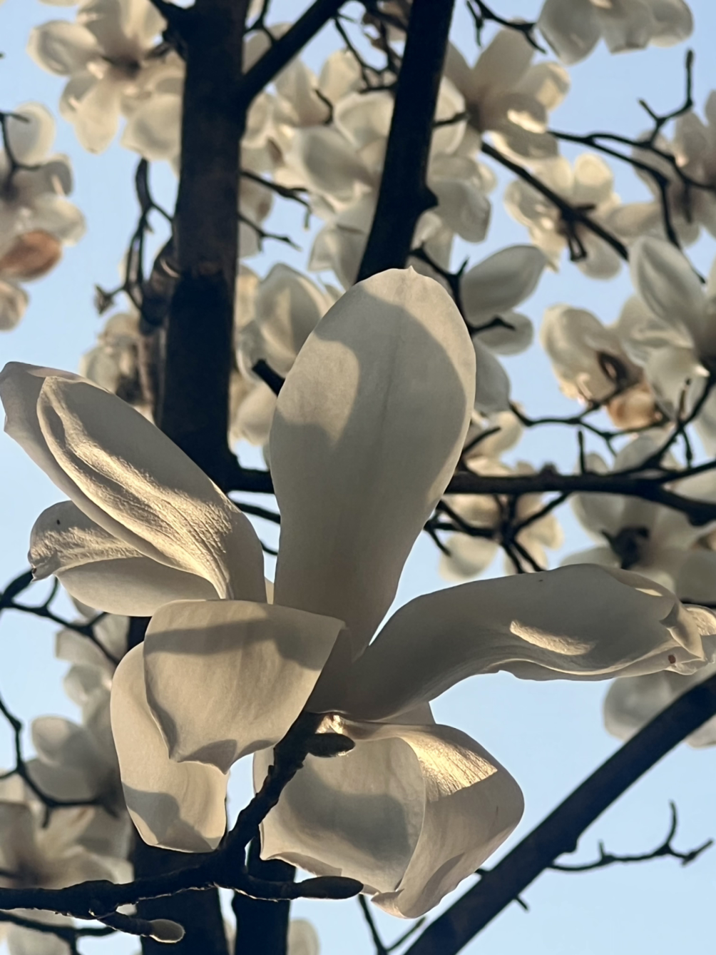 그새 목련꽃은 제수명을 다하고 사라져 가지와 가지 사이에 여백을 남겨 두었습니다.