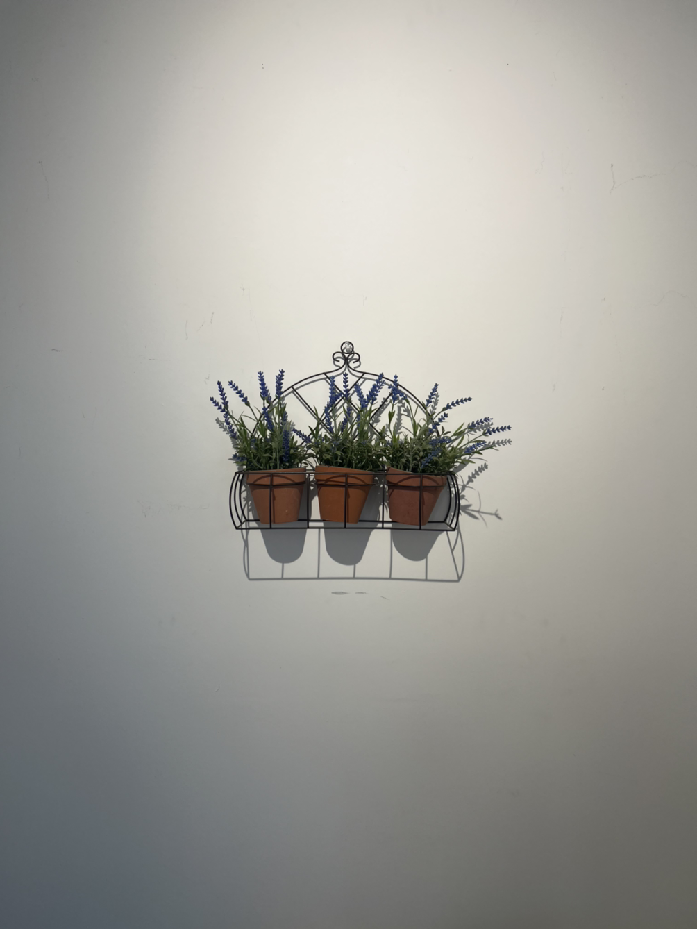 세 개의 작은 화분이 그림인 양 걸려 있습니다.