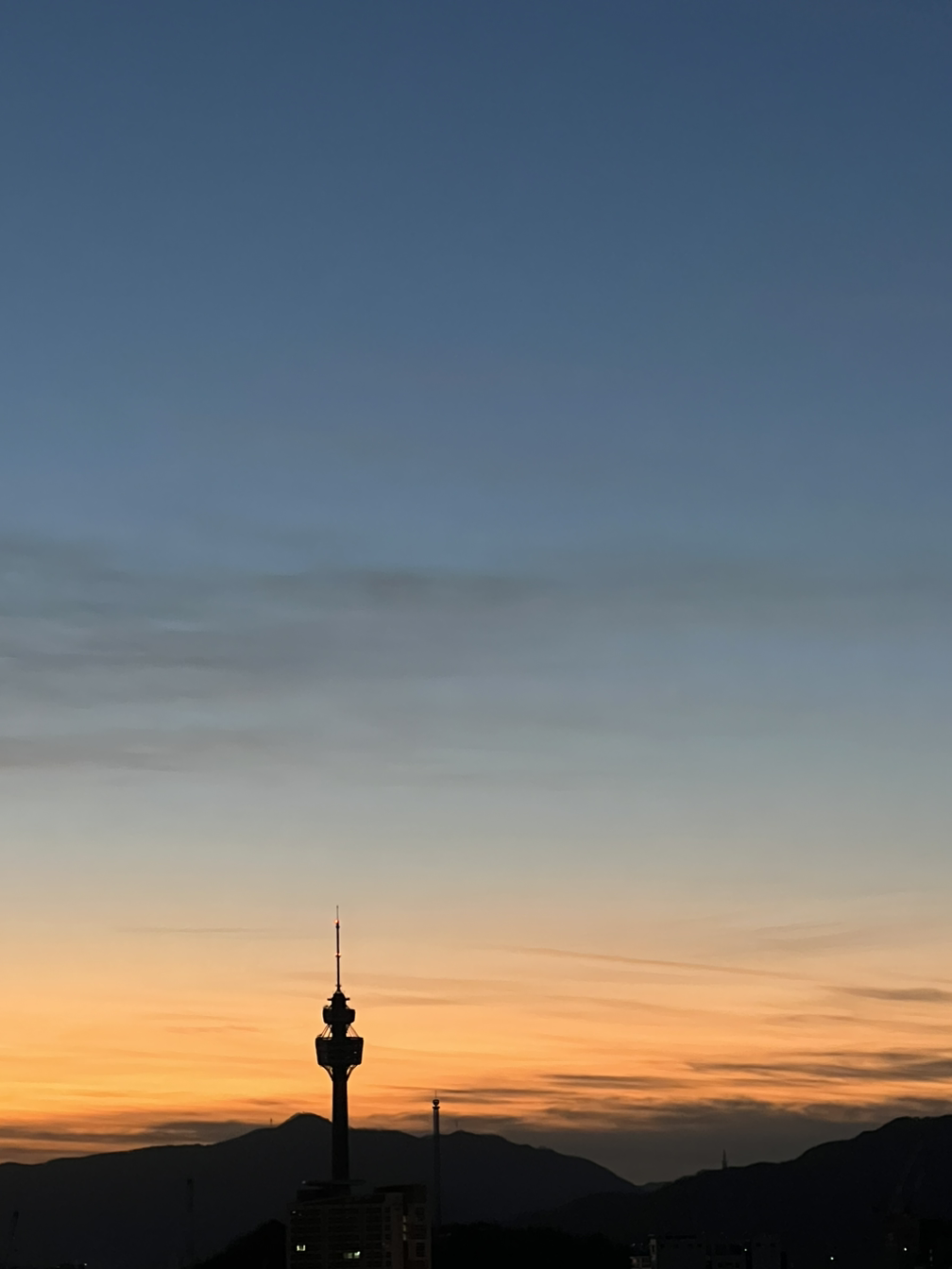 새벽녘에 일어나 기지개를 켜고 바깥을 바라보니 저 멀리 동이 트는군요.