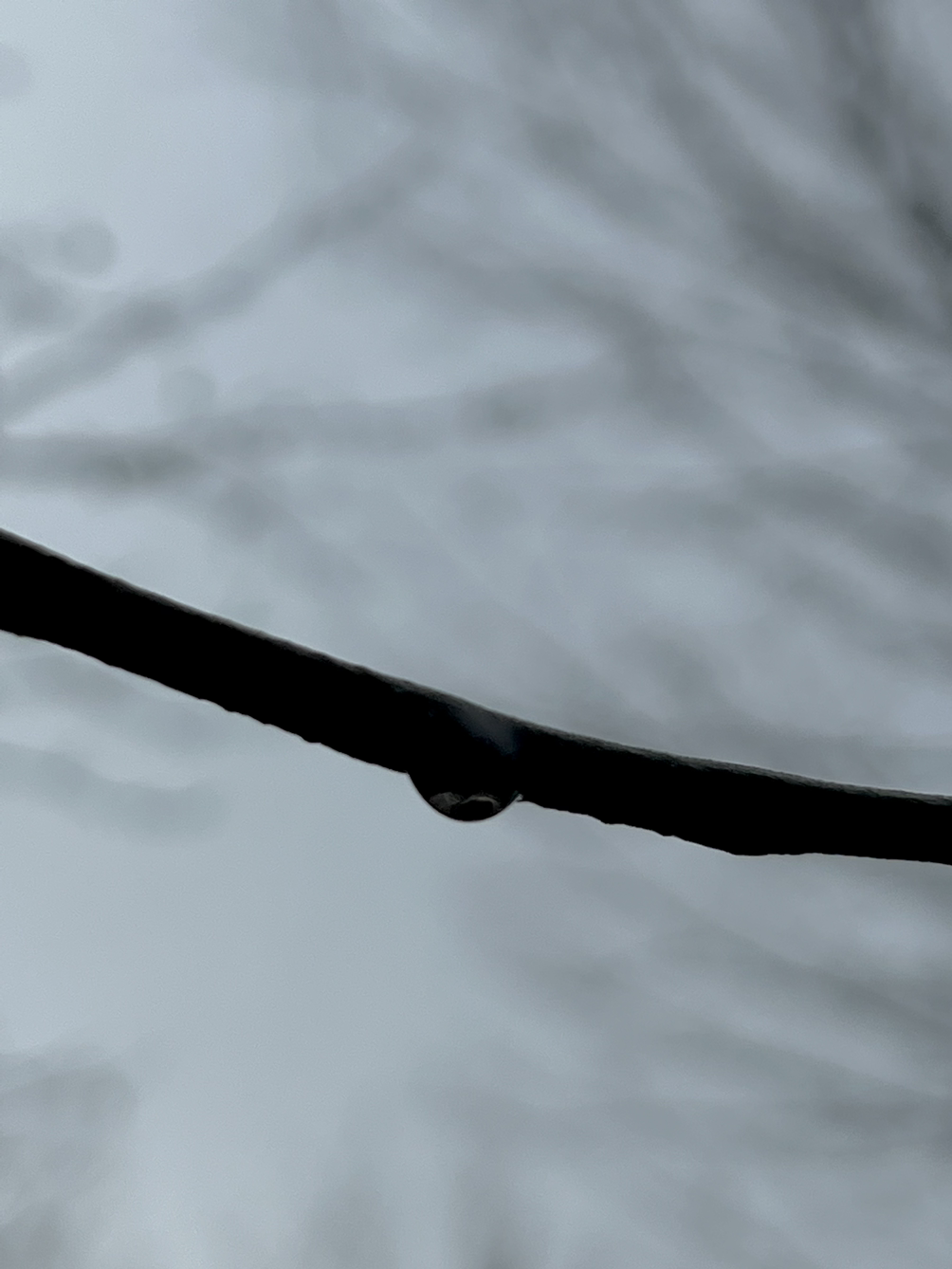 가느다란 나뭇가지에 맺힌 빗방울은 매달리려는 걸까요?