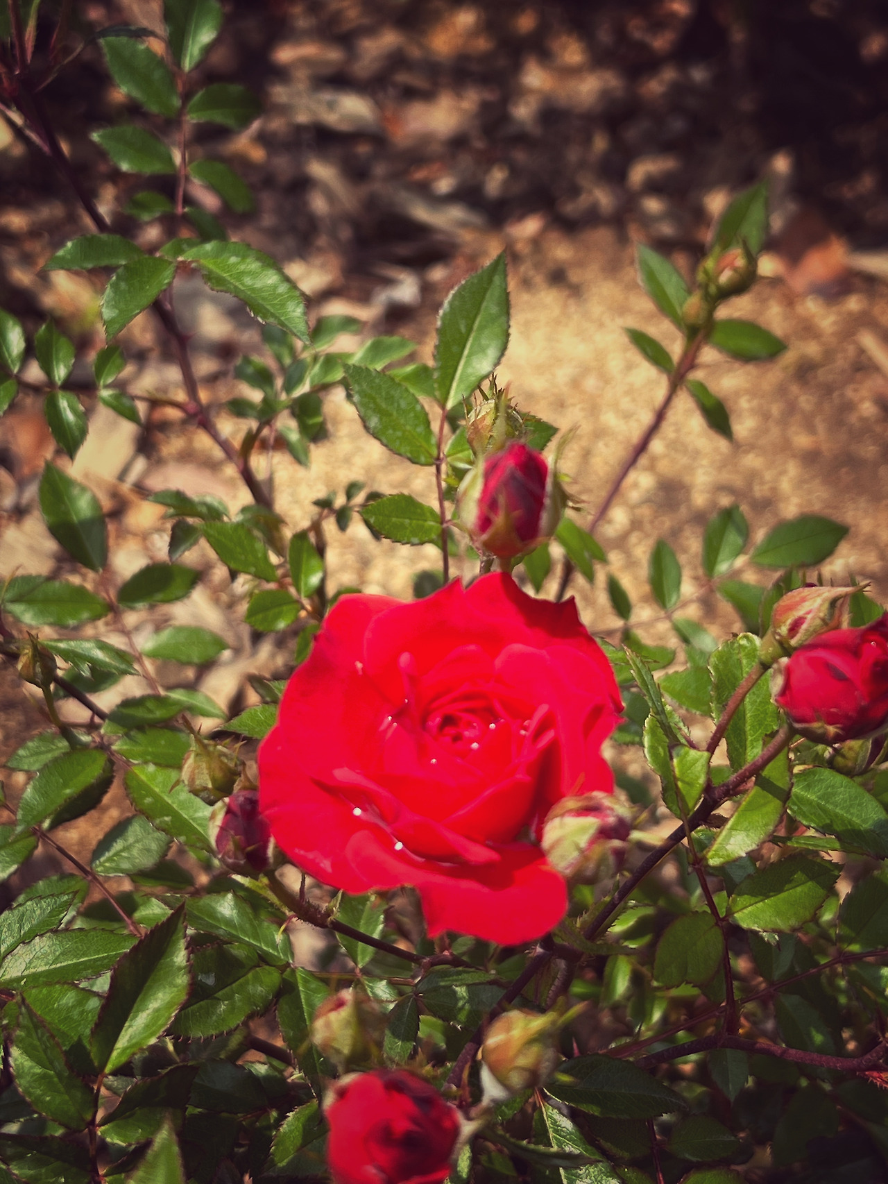 이 빨간 장미만은 느지막하게라도 제 존재를 드러내려는 듯,