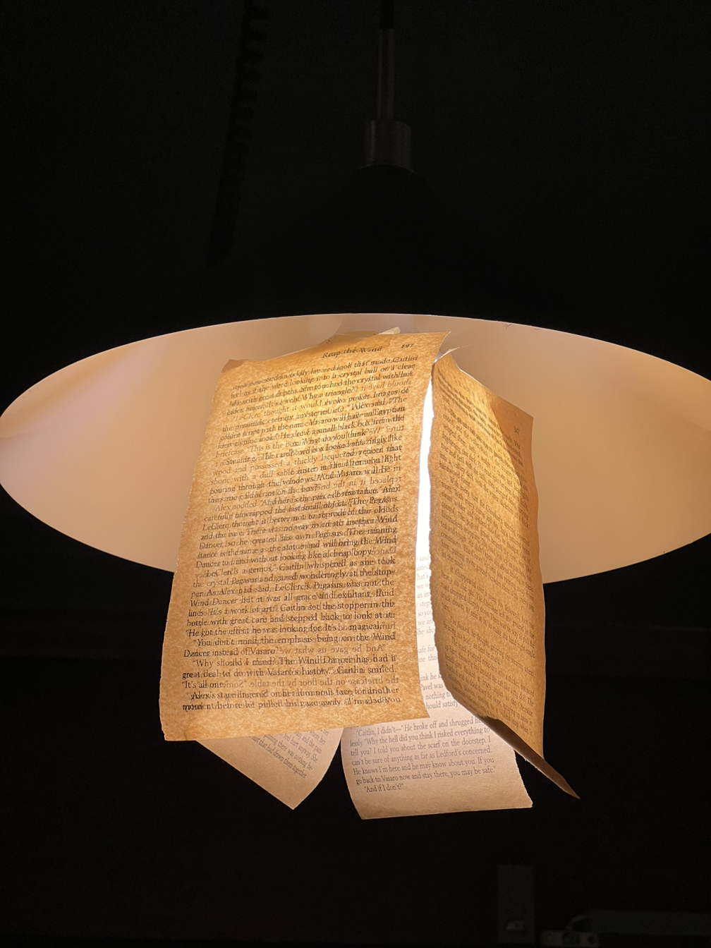 특이하게 책장을 찢어 불빛을 다소 가린 등불.