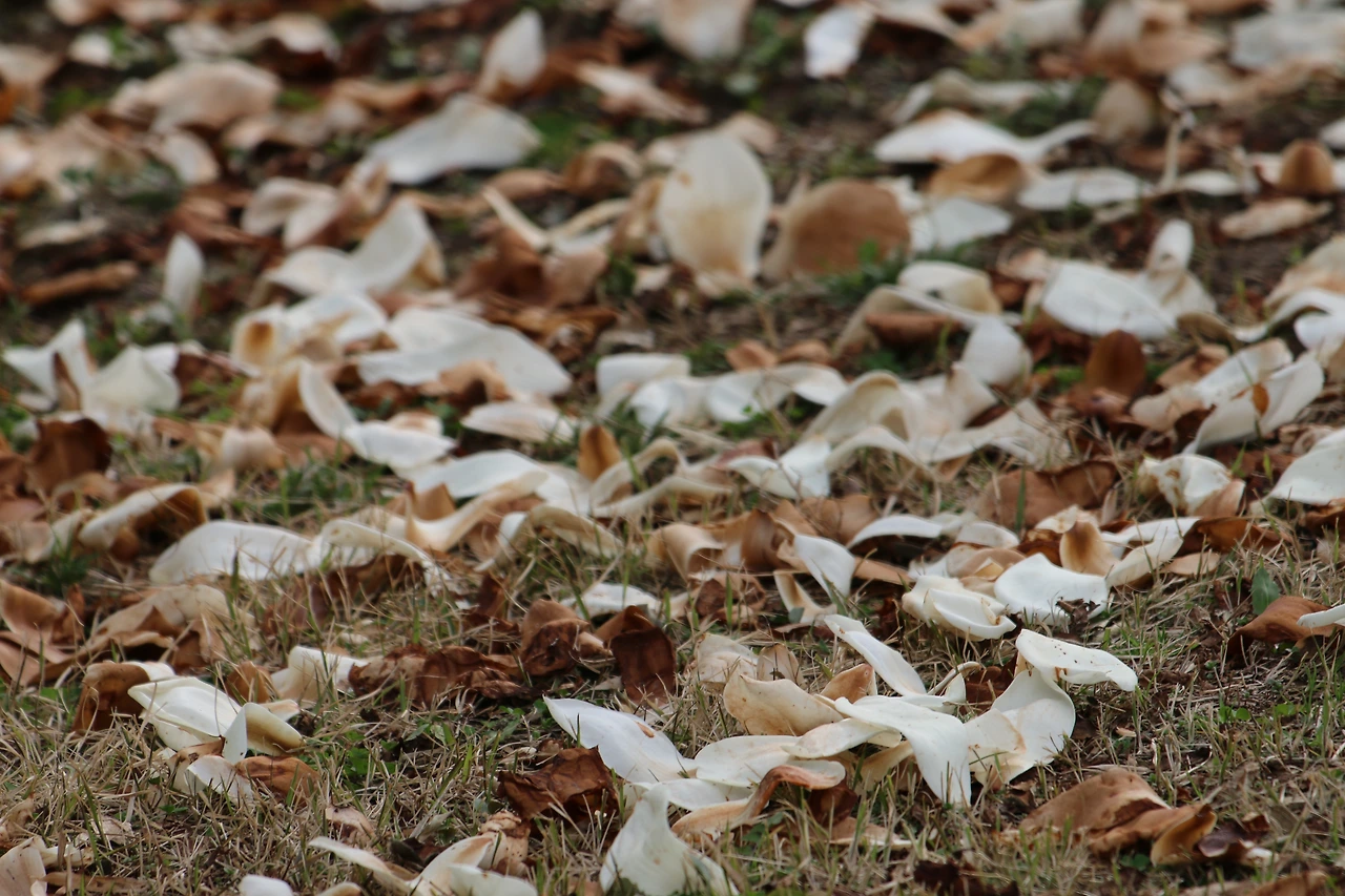 땅에 떨어져 갈변하는 목련 꽃잎은 매화나 벚꽃, 개나리처럼 슬며시 사라지지 않습니다.