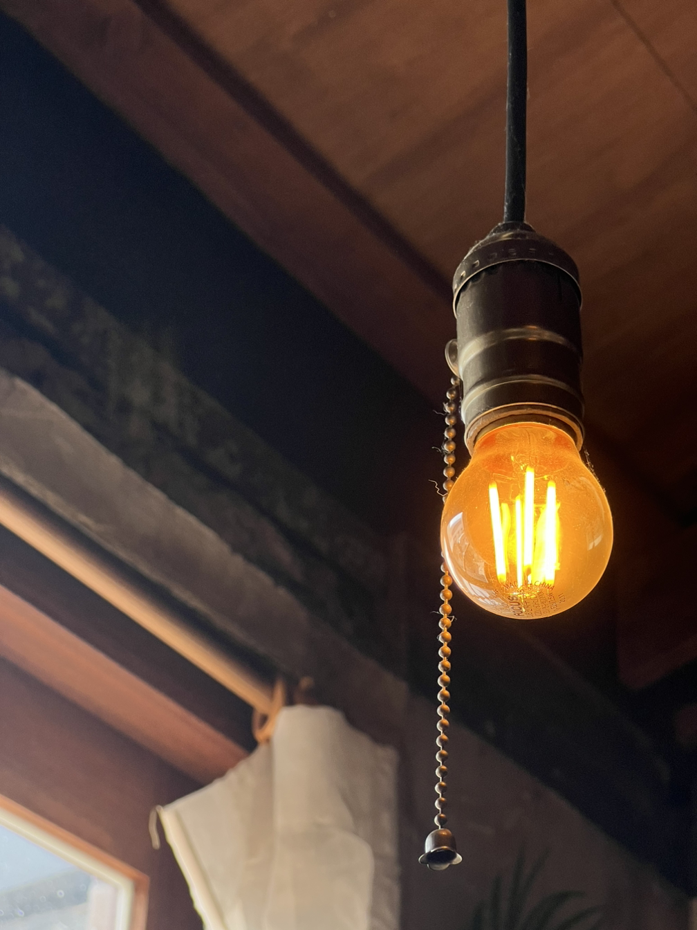 전구에 달린 줄을 딸깍 당겨야 불이 켜지고 꺼지는 전구.