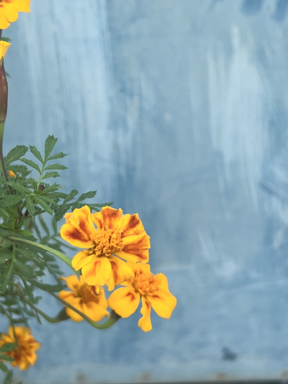 잠시 서성이던 골목길에서 바람에 흔들리는 노란 만수국을 만났습니다.