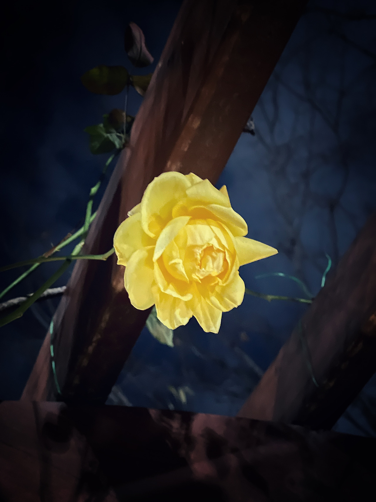 문득 고개를 들어 하늘을 보다가 아직 피어 있는 장미를 봤습니다.