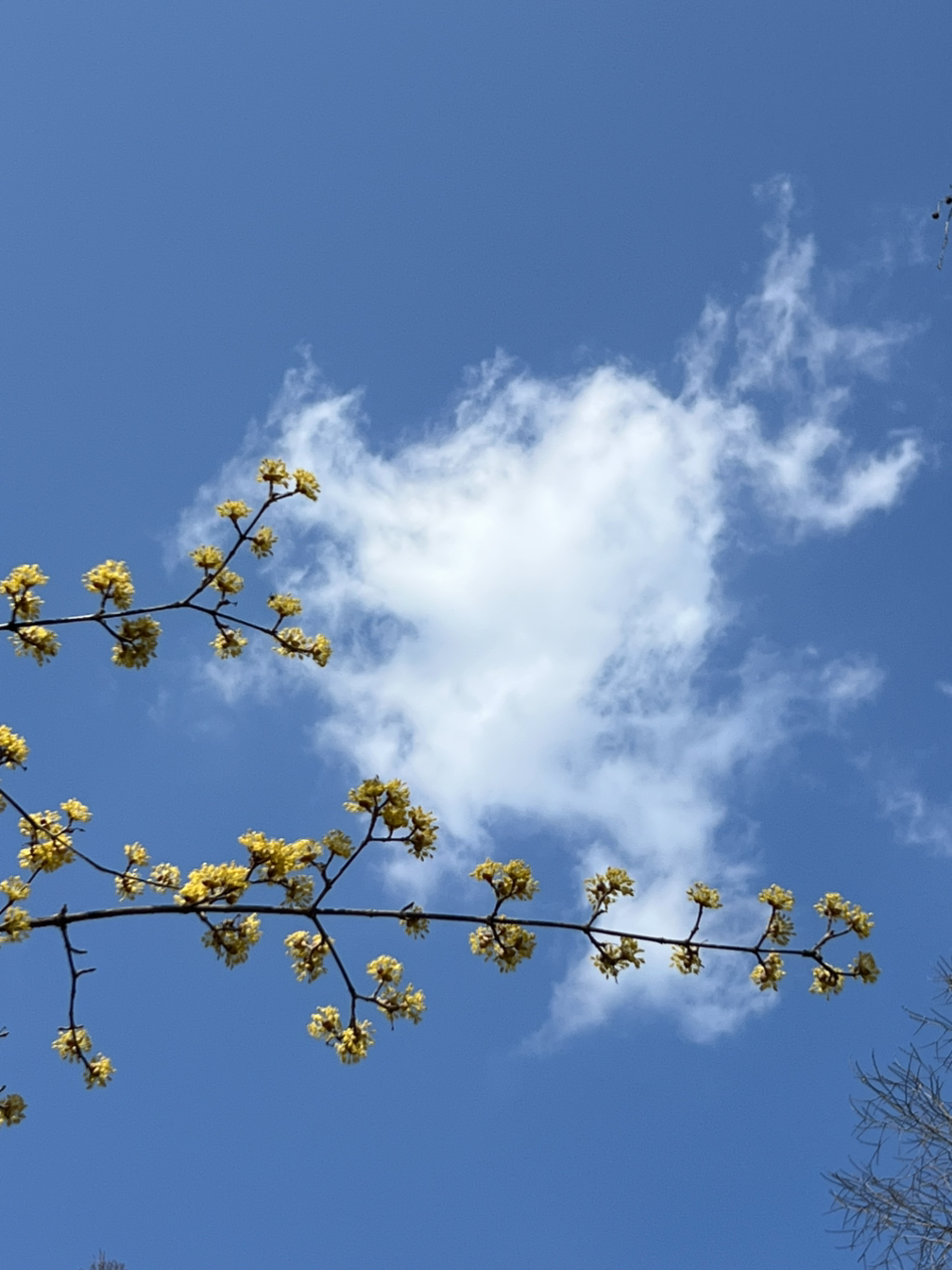 꽃나무 가지가 구름 한 점 걸어 놓고 있습니다.