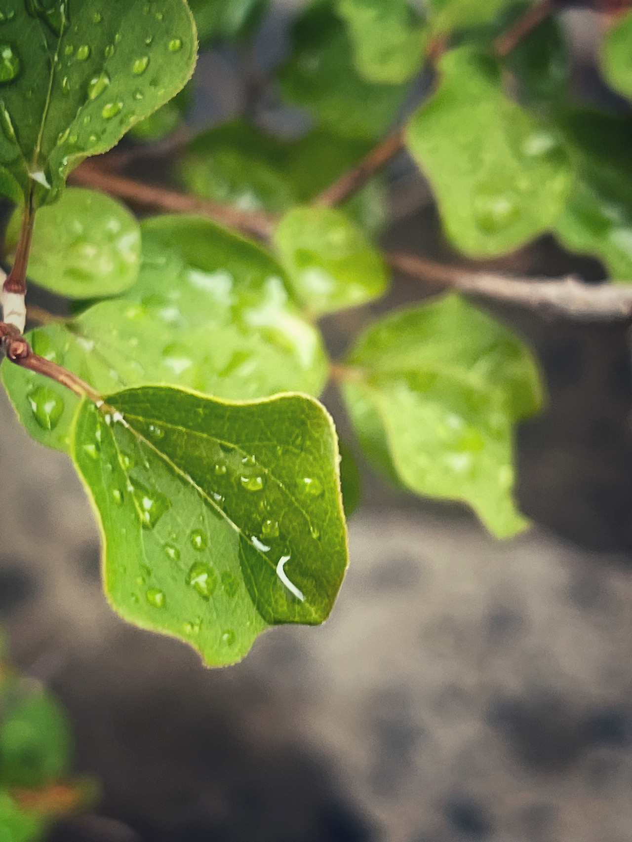 잠시 일하다가 빗방울을 머금은 잎을 바라봅니다.