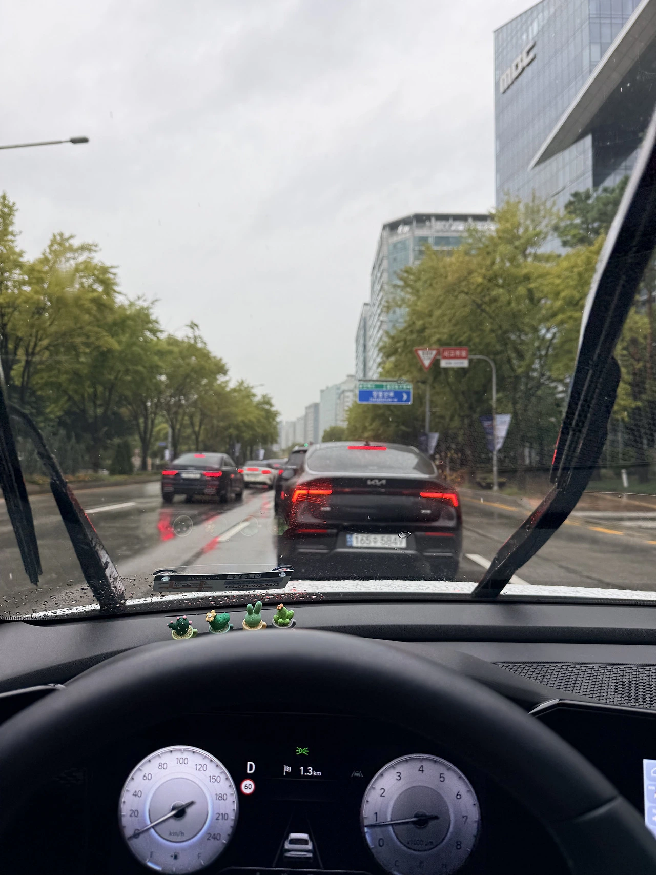 그리고 마침내, 어제와 오늘. 처음으로 혼자 주행을 했고, 혼자 주차를 해 보았다. 언어학습의 스텝을 밟아 올라가듯 그렇게. 어제는 폭우와 함께 자유로 진입에 성공했고, 오늘은 11시 방향 차선에 익숙지 않아 진입금지 라인으로 들어가려다 다른 길로 빠져 좁은 시골길을 5분 넘게 에둘러 달리기도 했다. 어제는 오후 장맛비같은 빗속에서, 오늘은 해지는 차 안에서. 기후의 변화무쌍함을 실감하며 나는 운전을 온전히 스스로 해냈다. 이미 했어야 하는 , 그러니까 이미 할 줄 알아야 하는 것을 너무 느즈막이 알게 된 것 같은 느낌이 들어서 조금 머쓱한 기분도 들었지만 확실히 조금 여유가 생긴 것을 보면서 스스로가 대견하다는 생각을 한 것 보면, 아직 갈 길이 먼 것 같다. (웃음)