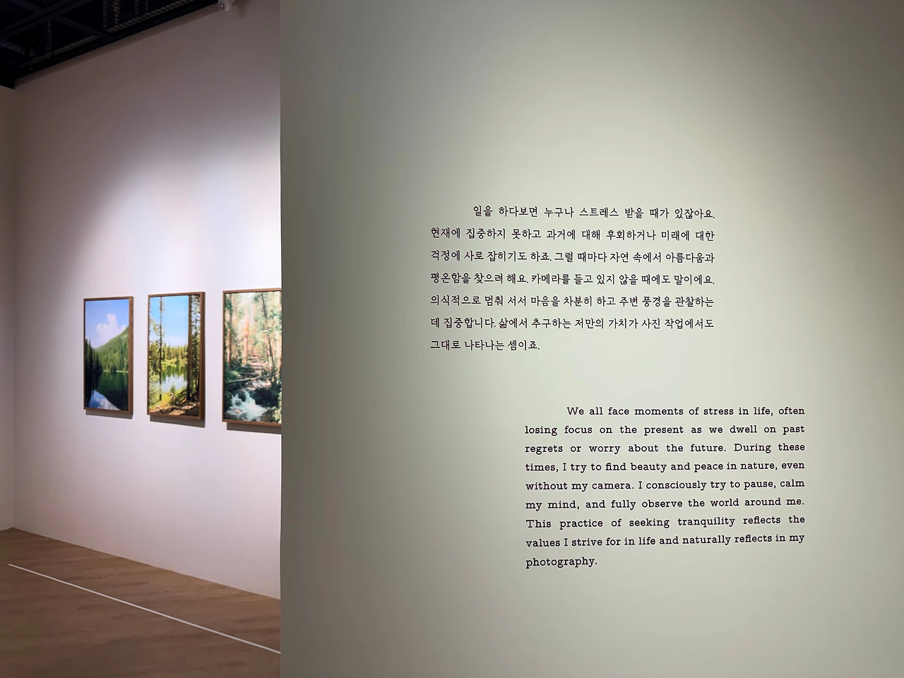 입장 시에 '찰칵' 소리가 나지 않는다면, 라이브 포토로 사진을 찍어도 괜찮은 전시라고 일러주어, 나는 사진을 몇 장 담았다. 사진들은 대부분 일상과 먼 그림 같았고, 사진에서 그림을 찾다니, 하는 묘한 위화감과 아름답고 여유로운 풍경들에 파묻혀 잠시 현실감을 잊었다.