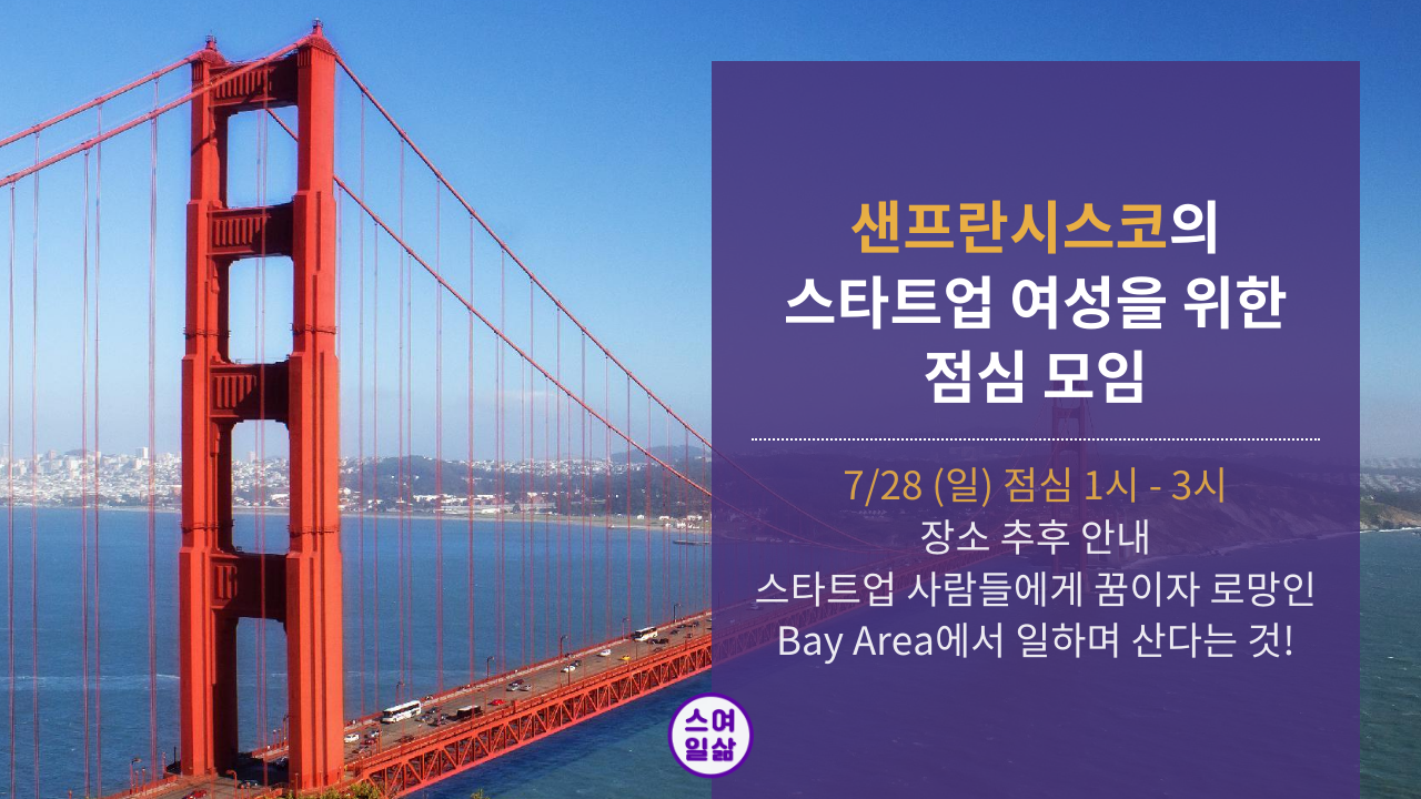 함께 이야기 나눠보겠습니다. 주변에 샌프란시스코에서 일하고 있는 여성/지인들이 있다면 모임을 추천해주세요!
