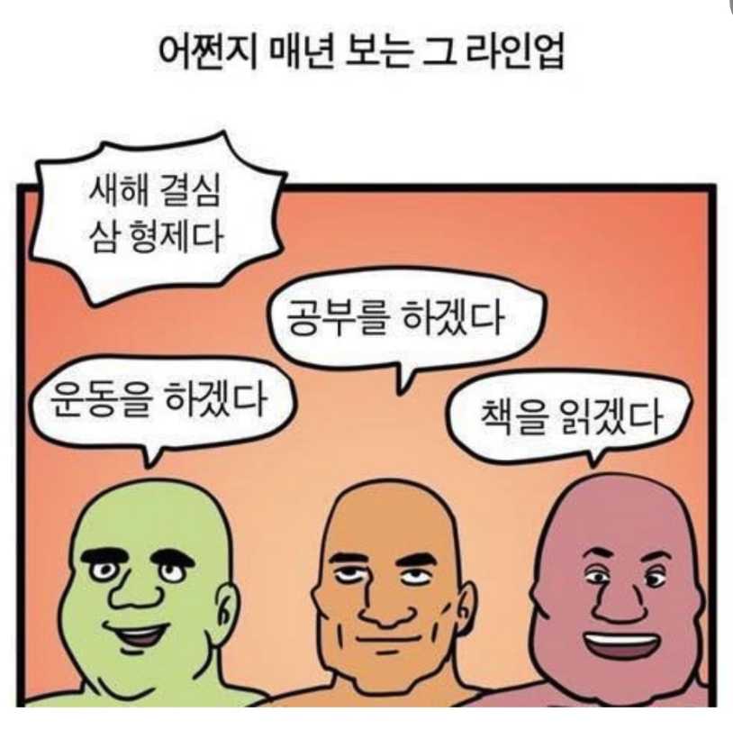 (새해 결심 삼 형제래요. 운동, 공부, 책.. 모두가 똑같은가봐요.)