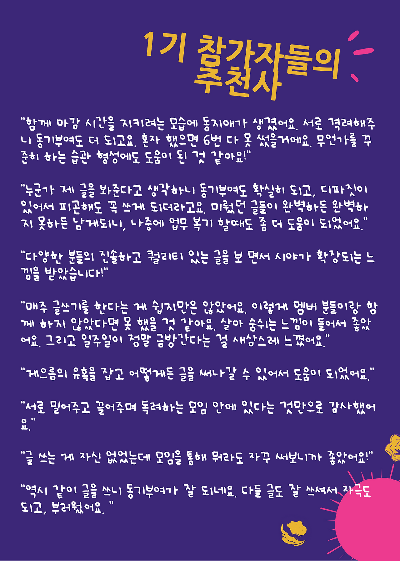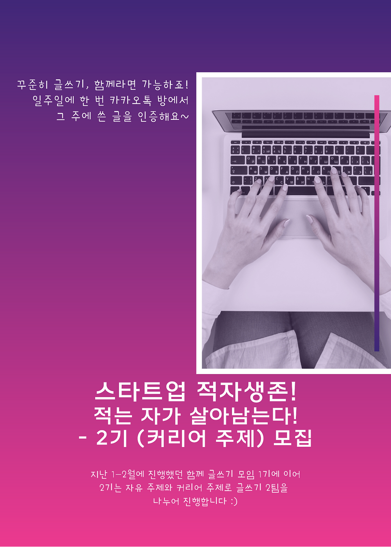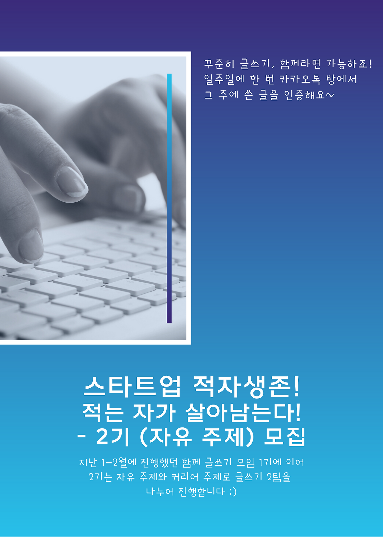 스여일삶에서는 보다 많은 멤버 여러분이 개인적인 생각 정리 + 업무에 도움 + 나아가 퍼스널 브랜딩에도 도움이 되는 글쓰기를 꾸준히 하기 위하여 "함께 글쓰기 모임 1기"를 만들어 운영하였습니다.