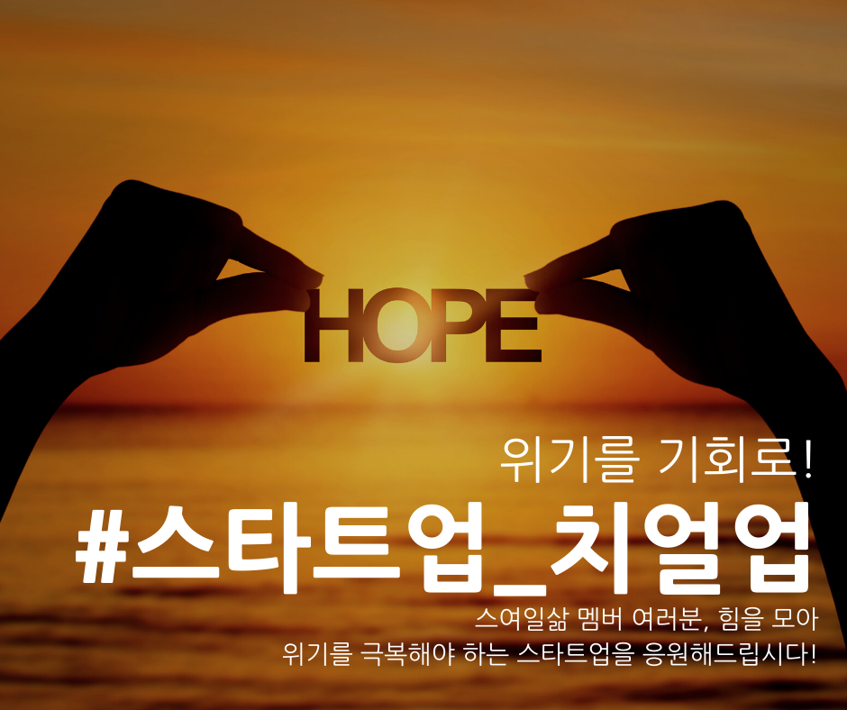 스여일삶이 코로나 19로 힘든 스타트업을 응원하기 위해 #스타트업_치얼업 캠페인을 합니다. 코로나19로 힘든 스타트업에게는 홍보를 도와드립니다. 커뮤니티나 페이지의 게시물에 댓글을 남겨주세요.