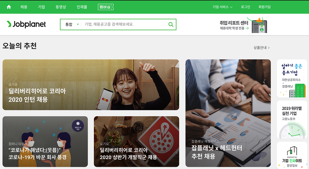 잡플래닛은 채용 사이트라기보다는 익명으로 채용 정보를 공유하는 소셜 미디어 성격이 강합니다. 지원자나 현직자가 기업리뷰, 연봉정보, 면접후기 등을 남겨 두기 때문에 면접 전에 꼭 확인해보는 사이트입니다. 다양한 도메인, 업력의 회사들에 대한 정보들이 많습니다.