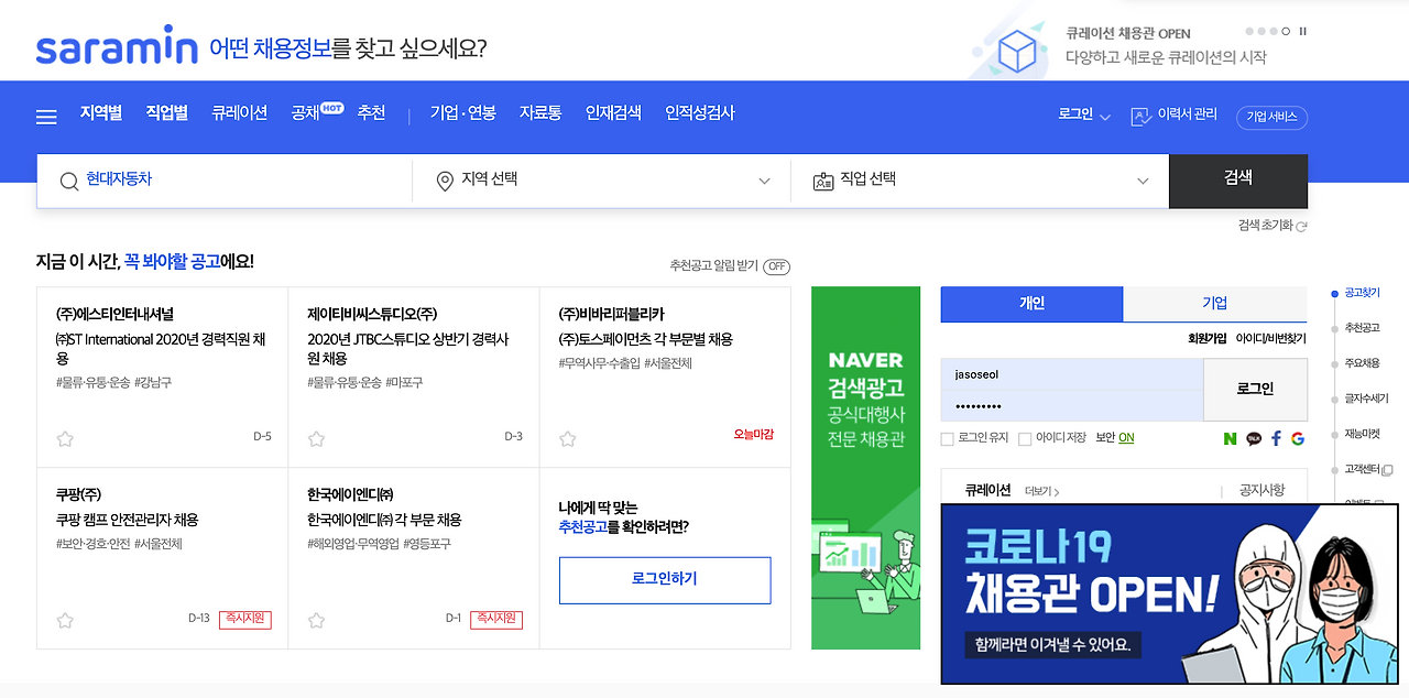 오랜만에 이 사이트들에도 들어가 보았는데, 거의 10년 전에 봤던 모습과 참 변한 게 없는 것 같은 ^^; 한결같은 모습들이었습니다. 모 사이트는 스타트업 채용 서비스 중 좋은 기능들을 베껴온 것 같은 곳들도 있어서 약간 띠용했습니다. @.@