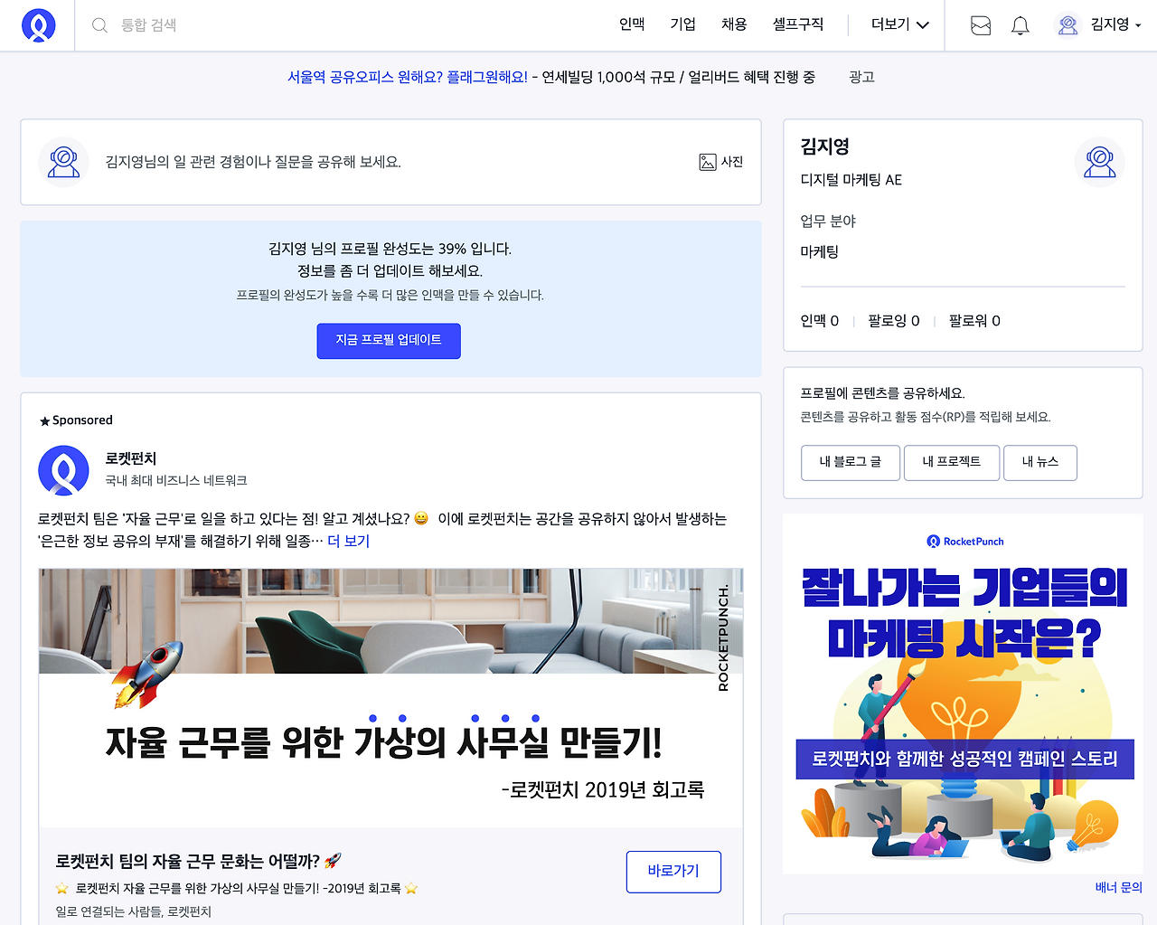 https://www.rocketpunch.com/ 2013년부터 서비스 시작