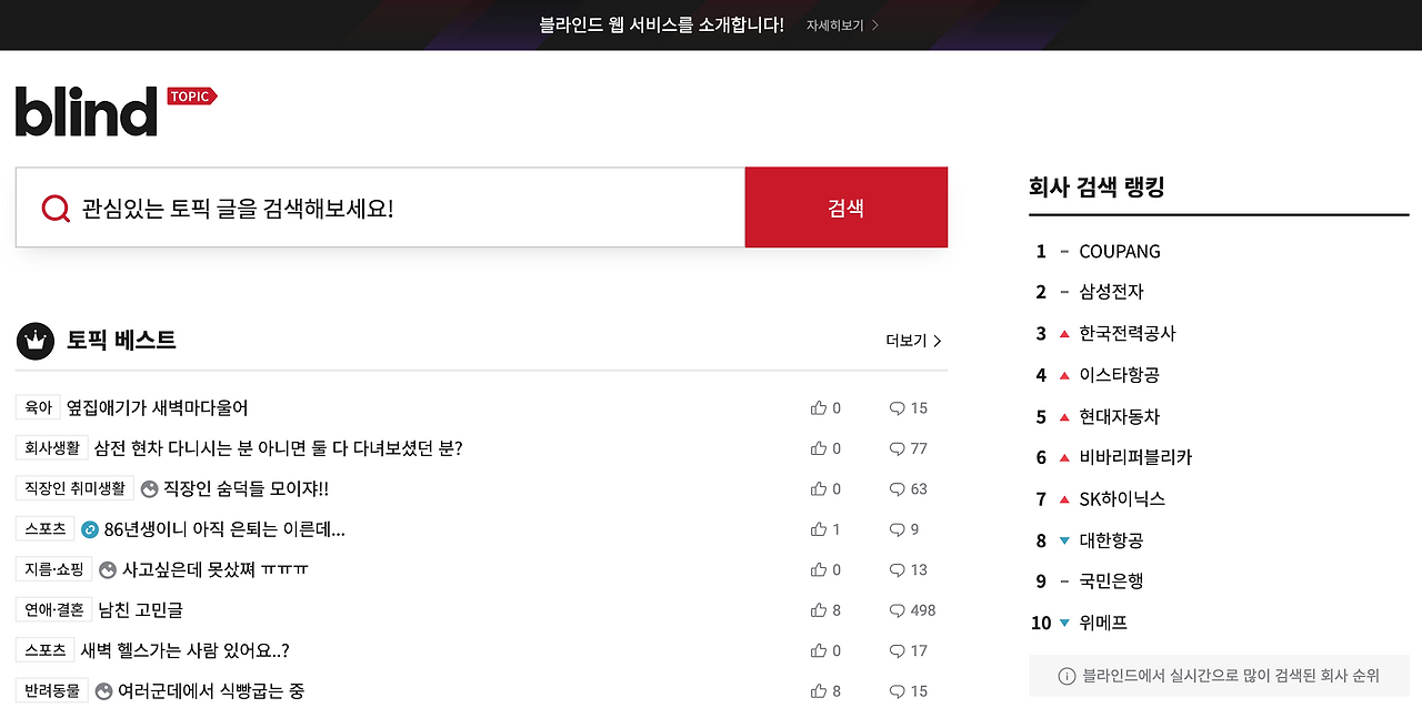 https://www.teamblind.com/kr/ 2013년부터 시작
