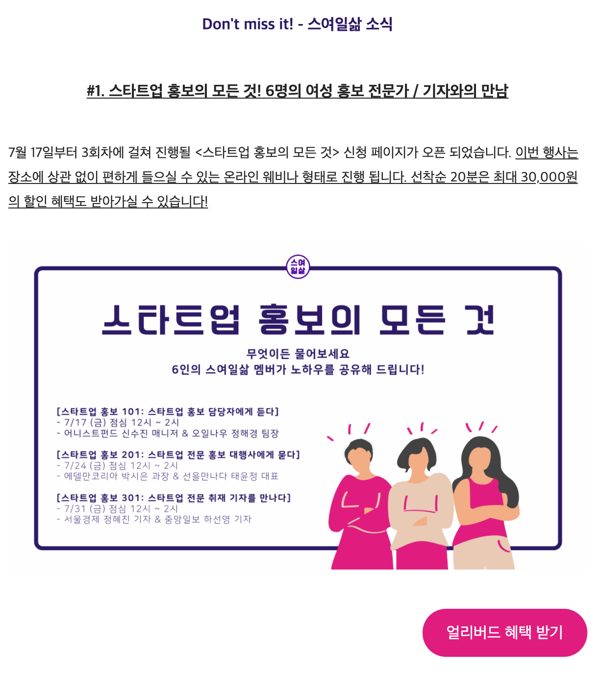 - 누구에게: 스타트업 여성들에게 (스여일삶 멤버들에게)