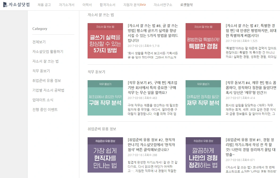 우리 서비스는 앱도 있다. 그렇지만 작년까지는 채용 공고나 자기소개서 작성과 관련된 기능들이 있었을 뿐, 취업 준비나 자기소개서 작성에 도움이 되는 컨텐츠를 담아둘 곳은 없었다.