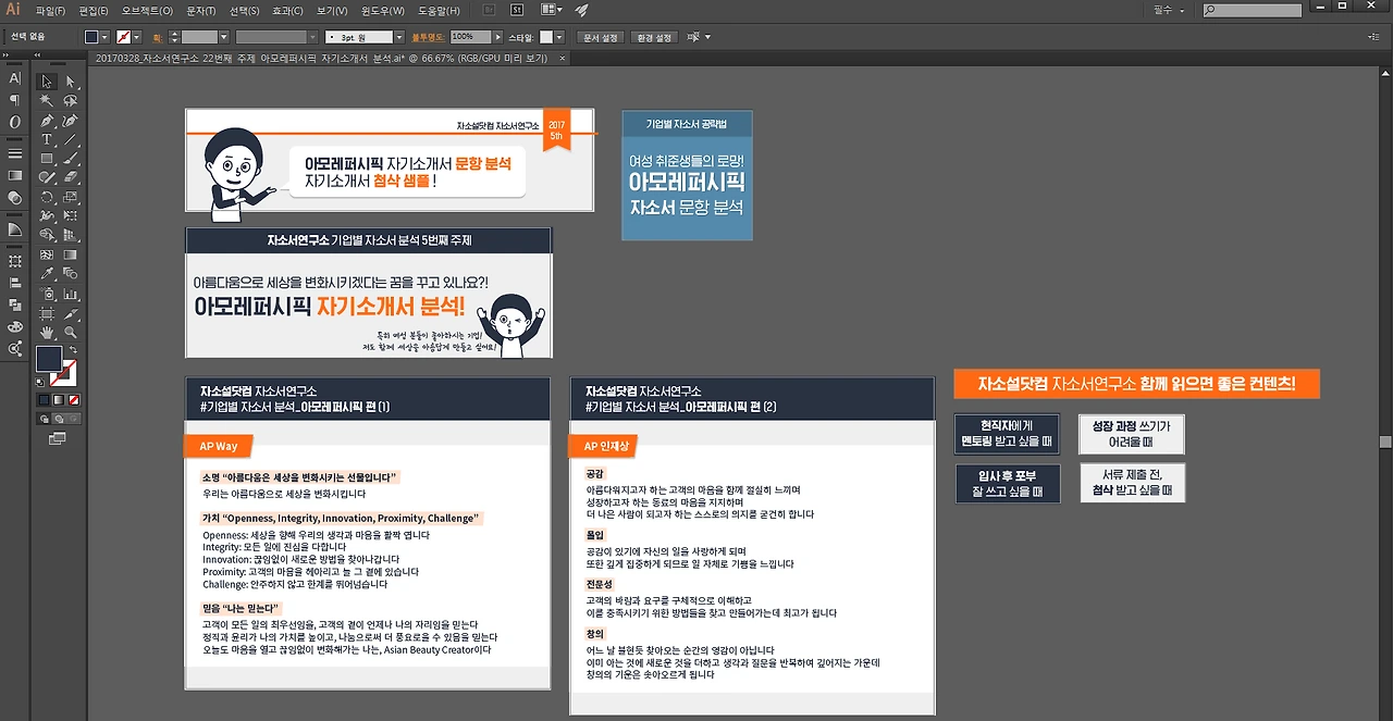 바로 디자인 툴이다. 지금 나는 정해진 디자인 가이드에 맞게 일러스트레이터 프로그램을 활용해서 이미지 작업을 할 수 있는 수준이 되었다.