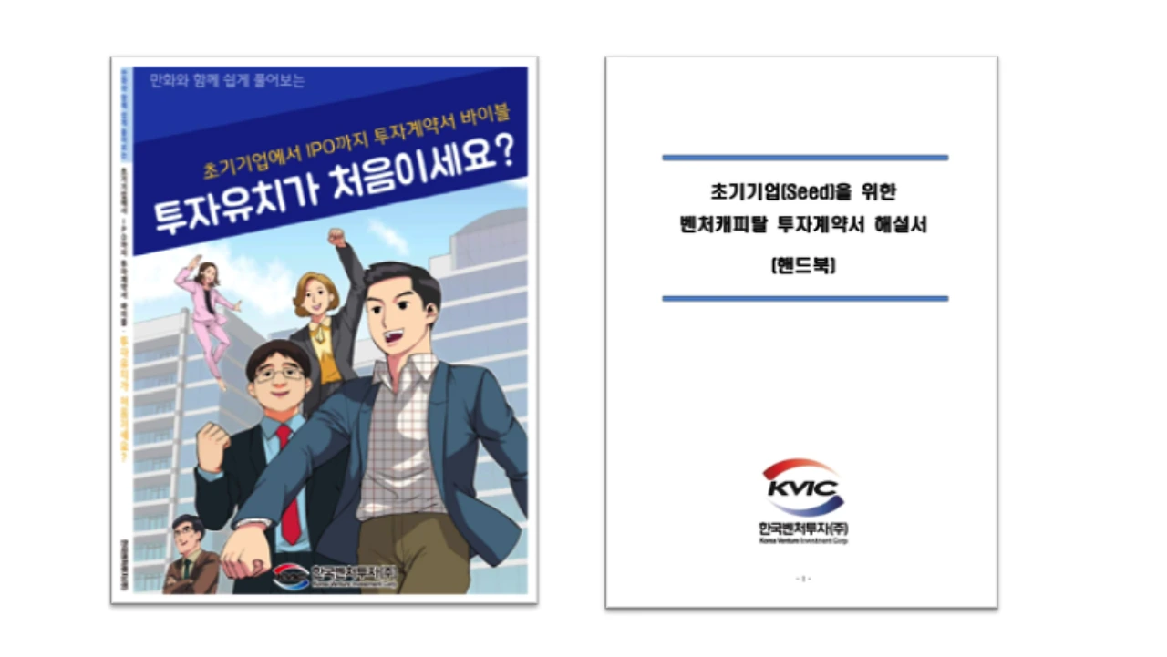 한국벤처투자에서 배포한 자료 중에 투자에 대해 만화로 설명하는 브로슈어가 있습니다. 주식에 대한 내용과, 계약서 관련한 내용 등 기본적인 내용이 잘 설명되어 있으니 참고해볼 만합니다.