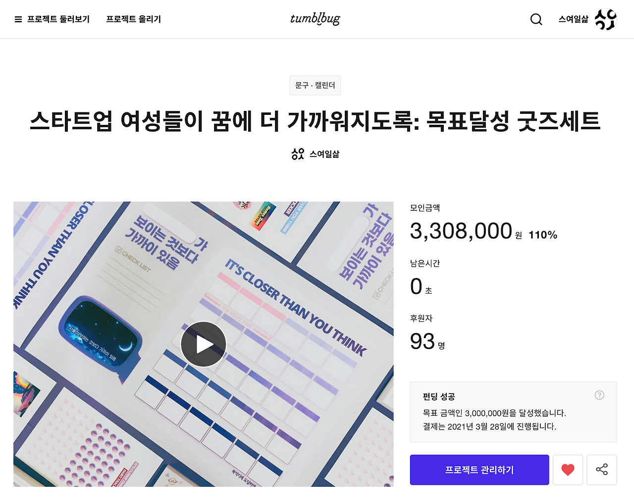 3월의 가장 큰 일: 스여일삶 '목표달성 굿즈 세트' 텀블벅 펀딩