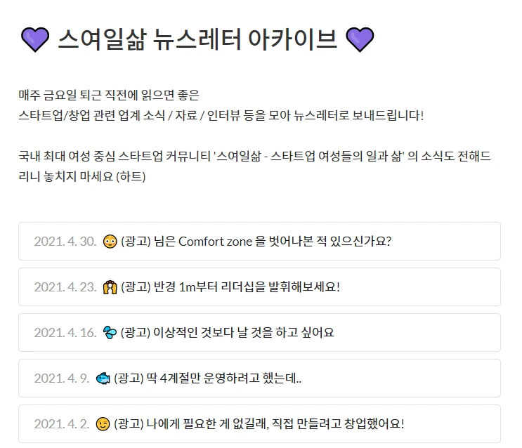 4월의 마지막 날 무려 92번째 뉴스레터를 발송했다. 매주 금요일에 뉴스레터를 보낸 지, 벌써 2년이 가까워 온다.