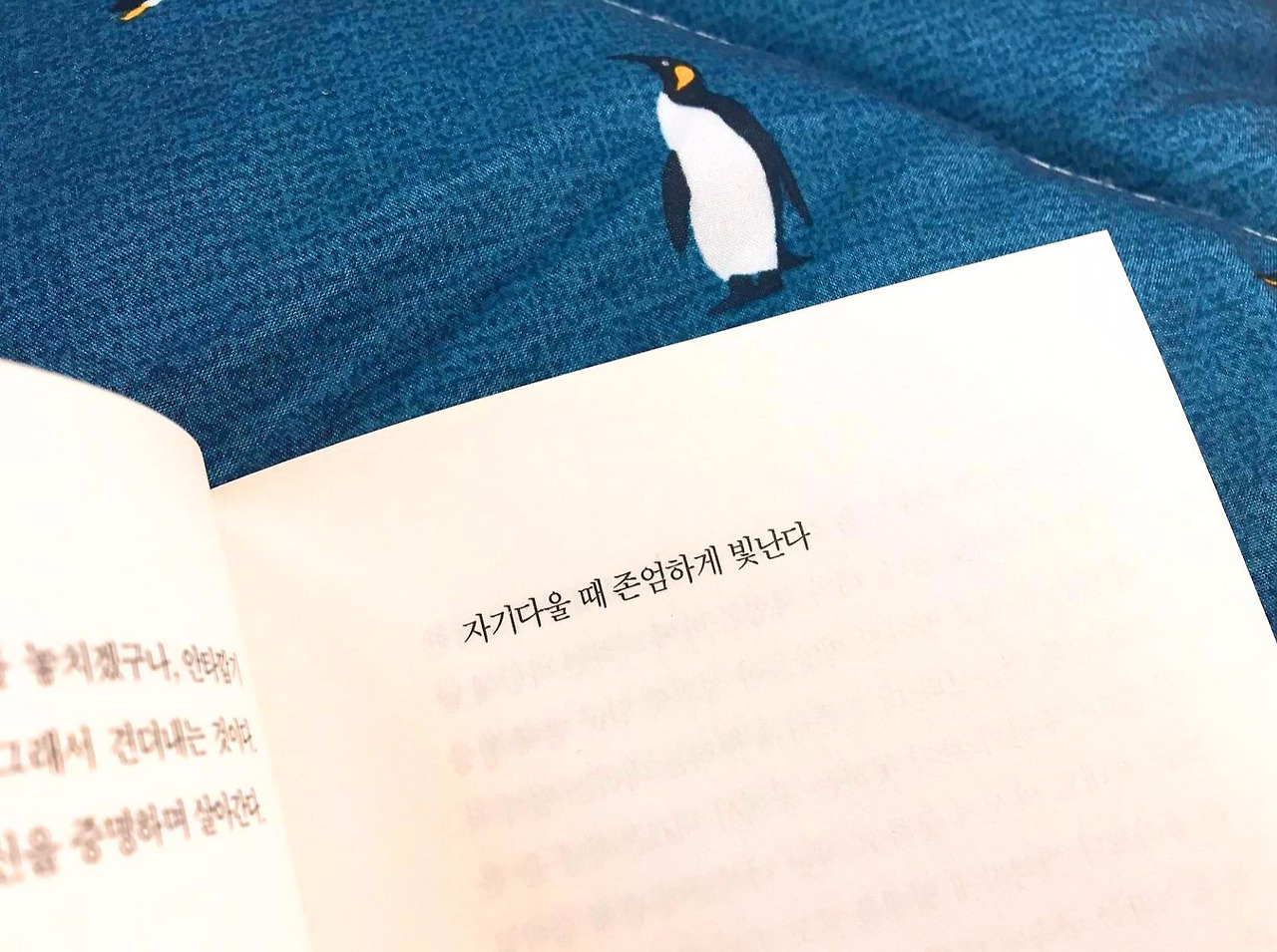 샤워를 끝내고 하루를 정리하면서 침대 옆에 있는 아무 책이나 집어서 읽으면 좋더라고요.