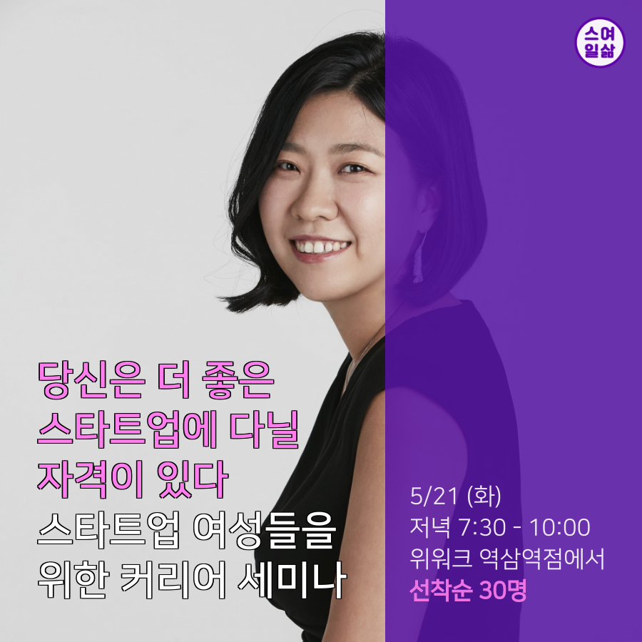 - 스타트업 여성을 위한 커리어 세미나 "당신은 더 좋은 스타트업에 다닐 자격이 있다."
