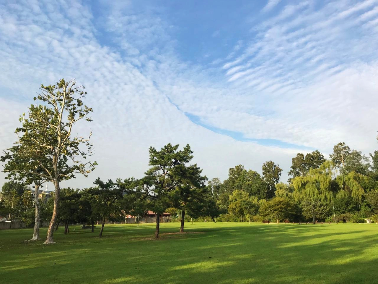 9월 중순, 평일 낮 용산 가족공원은 조용하고 평화로웠습니다. 푸른 잔디, 까치와 이름 모를 새들의 짹짹거림, 약간 축축한 나무 냄새, 파란 하늘, 선선한 바람이 있었습니다. 산책을 하며 주변의 소리와 바람의 촉감을 즐기고, 잠시 벤치에 앉아 하늘을 바라보았습니다. 좋은 느낌을 사진에 담고 가만히 바라보았습니다.