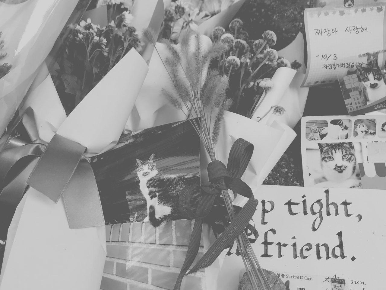 짜장이와 함께한 행복한 시간이 긴 만큼 상실감도 컸습니다. 짜장이는 저에게 행복만 안겨주고 급하게 가버렸습니다. 학교에 짜장이를 추모하는 공간에 다녀왔습니다. 짜장이는 사랑을 많이 받은 행복한 고양이였을 것입니다. 가는 길이 외롭지 않도록 장난감과 간식 그리고 사랑이 짜장이 곁에 있었습니다.