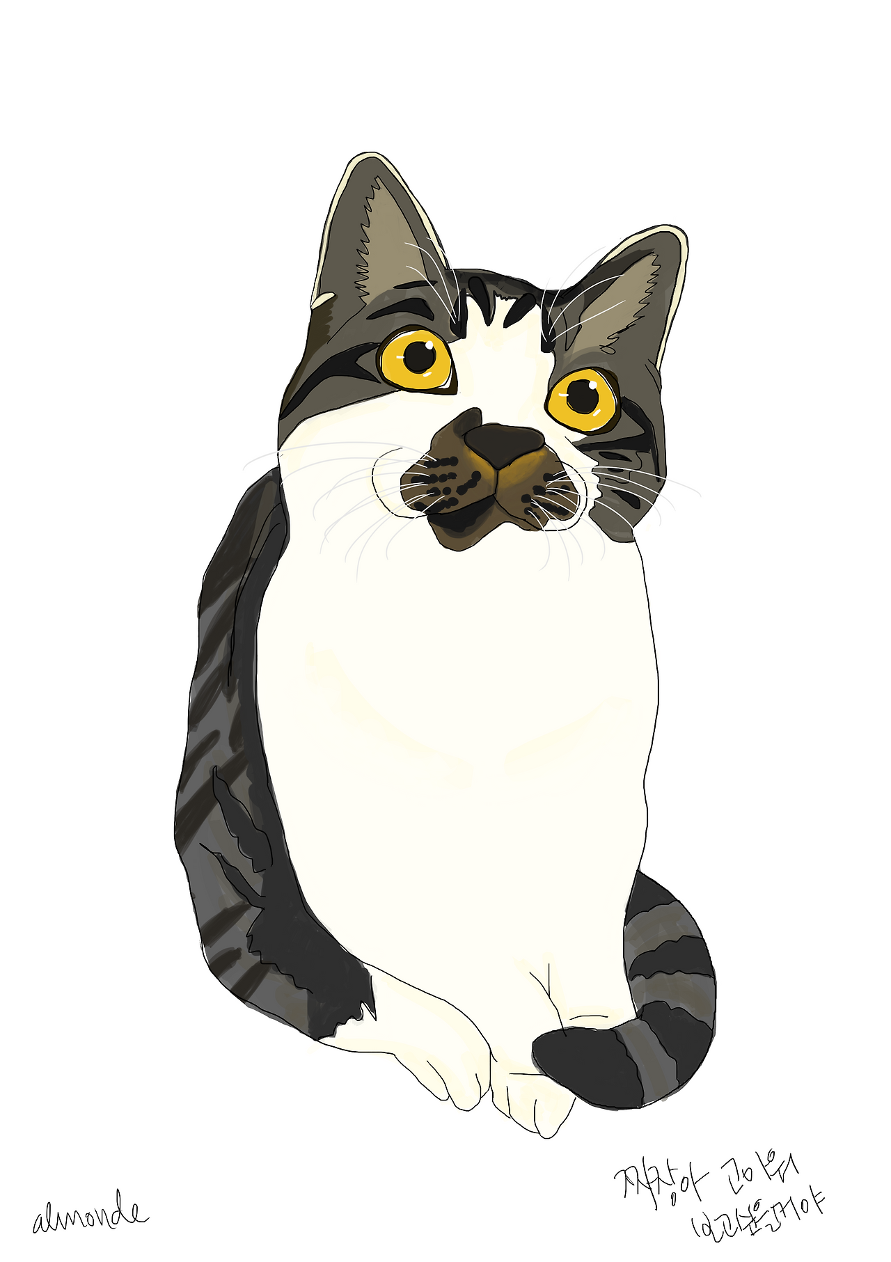 짜장이는 누구보다 자기주장이 강했습니다. 자기 가고 싶은 대로, 하고 싶은 대로 살았죠. 눈을 반짝이며 야옹야옹 울면 그 누가 짜장이의 요구를 안 들어줄 수 있을까요? 좋으면 좋다, 싫으면 싫다는 표현을 잘했습니다. 특히 신경질이 나면 '으르르릉' 소리를 내며 아주 싫은 티를 냈지요. 냥냥 펀치도 과감히 날리기도 했습니다. 짜장이보다 1개월 정도 어린 고양이 꼬미를 괴롭히는 게 일상이었습니다. 하지만 투닥투닥 거리며 둘은 누구보다 친한 친구가 되었지요. 어찌나 겁이 없는지 다른 고양이들과 마주치는 일은 다반사였고, 한 번은 자기보다 큰 수컷 고양이한테 쫓겨 나무에서 벌벌 떠는 모습도 본 적 있습니다. 그래도 짜장이는 모험을 즐기는 용감한 고양이였습니다.