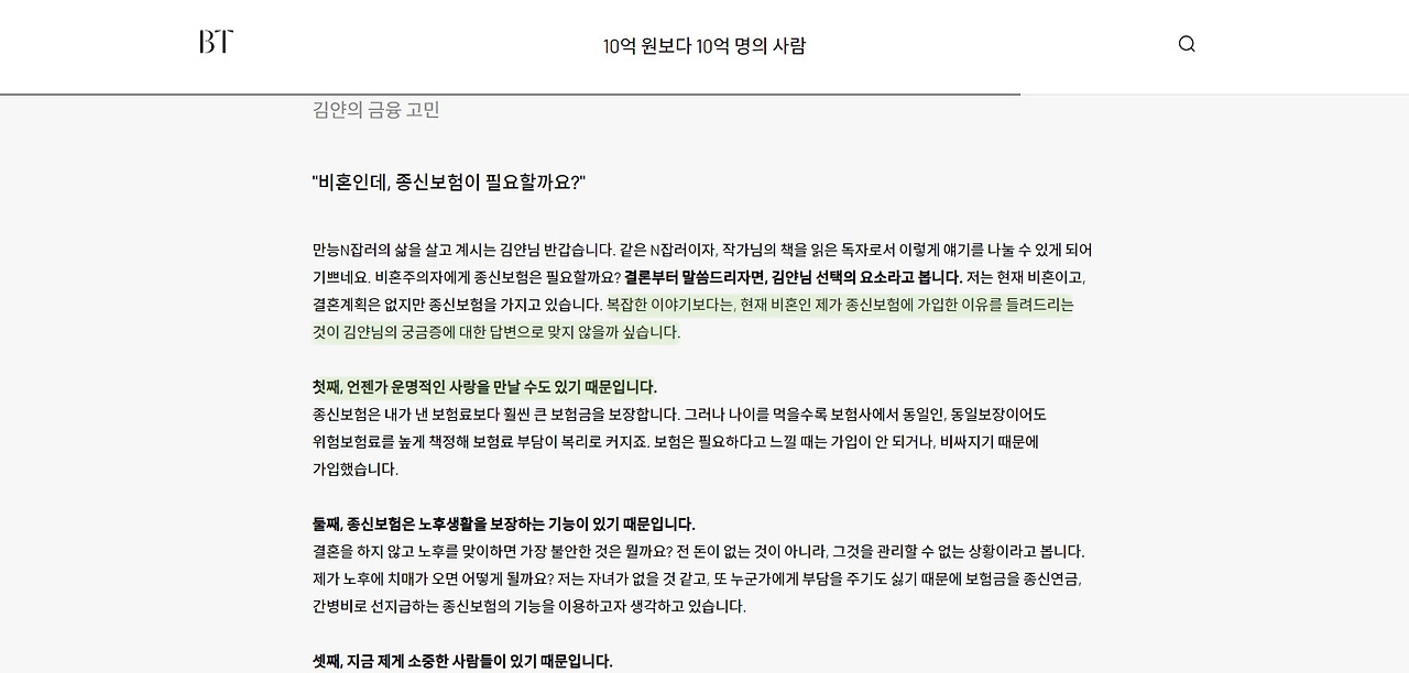 결혼 계획이 없는 제가 종신보험에 가입했던 이유는, 언젠가 운명적인 사랑을 만날 수도 있기 때문입니다.
